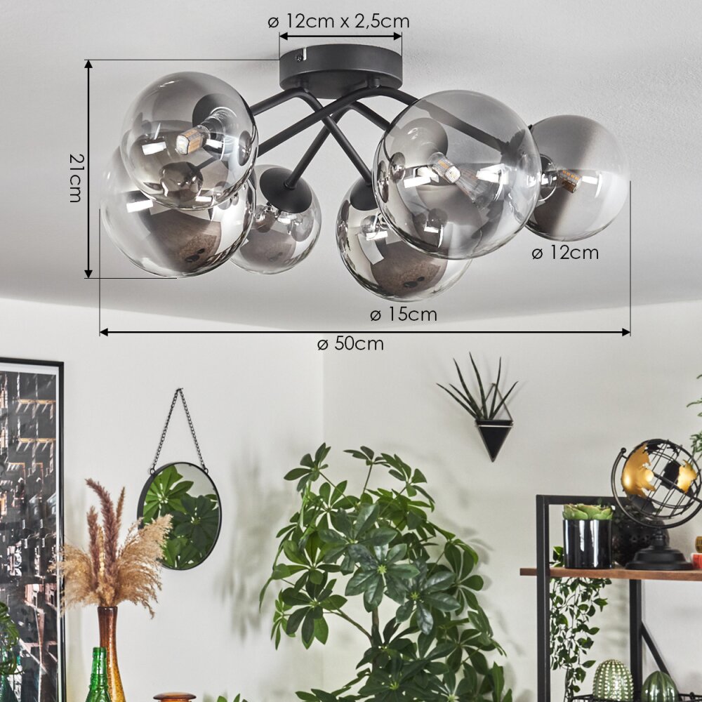 Chehalis Plafondlamp - Glas 12 cm, 15 cm Duidelijk, Rookkleurig, 6-lichts