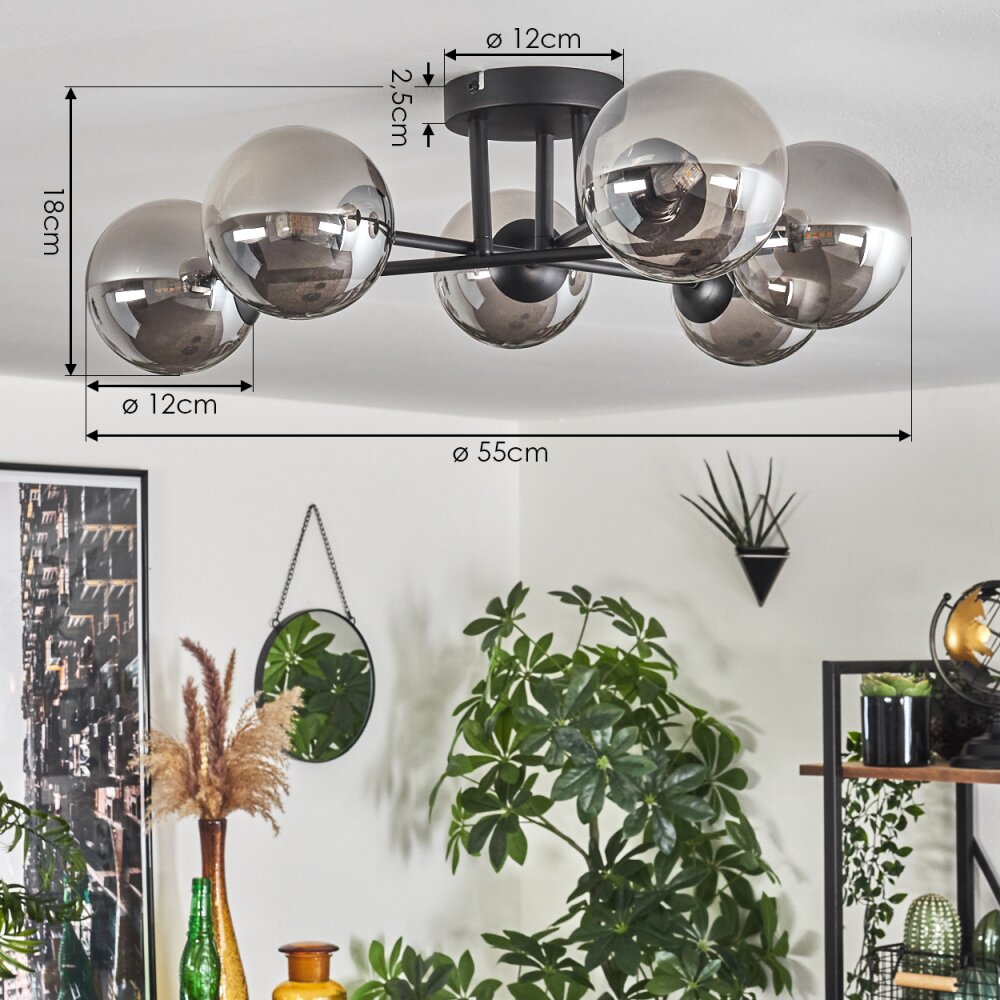 Chehalis Plafondlamp - Glas 12 cm Rookkleurig, 6-lichts