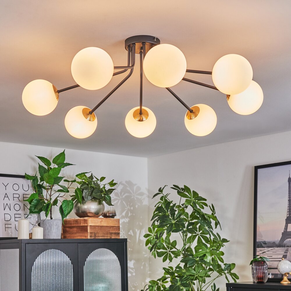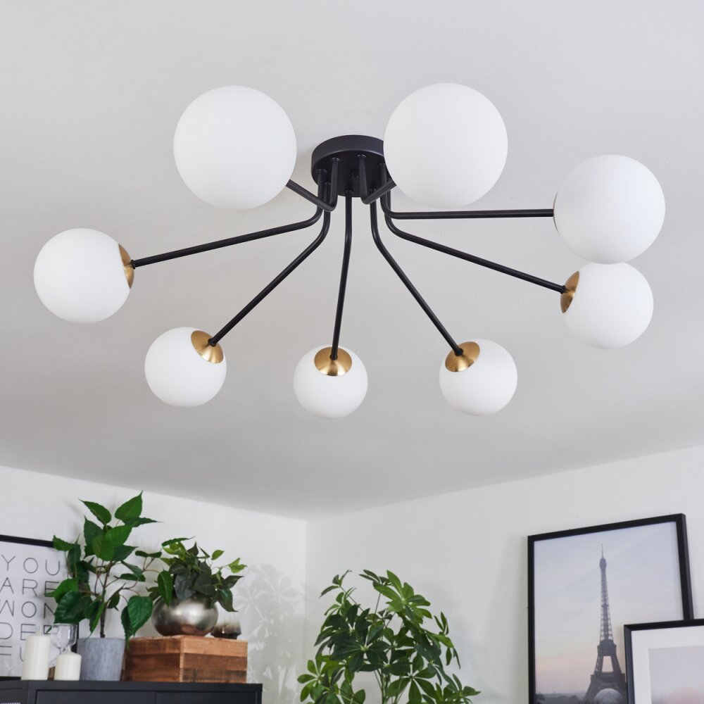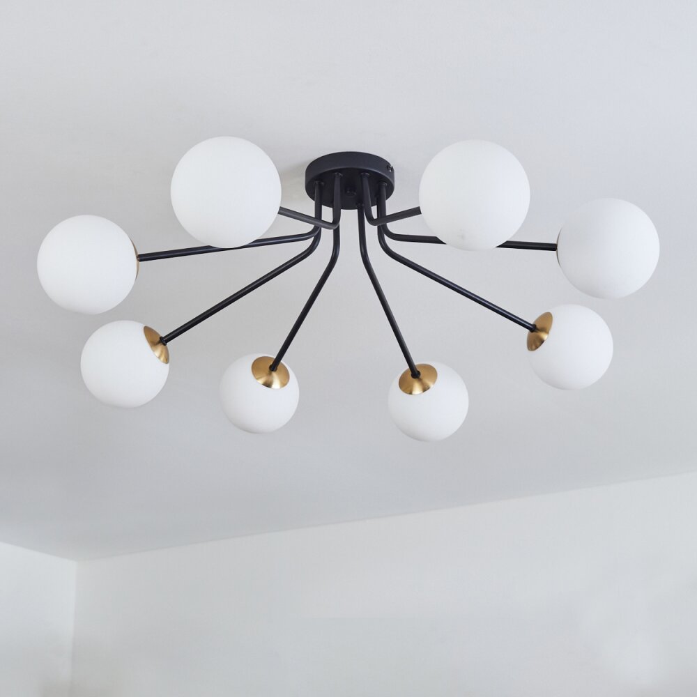Chehalis Plafondlamp - Glas 12 cm Goud, Zwart, 8-lichts