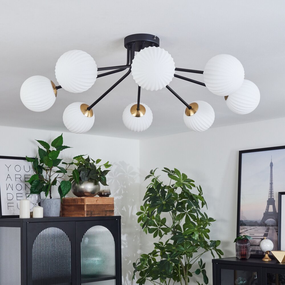 Chehalis Plafondlamp - Glas 12 cm Goud, Zwart, 8-lichts