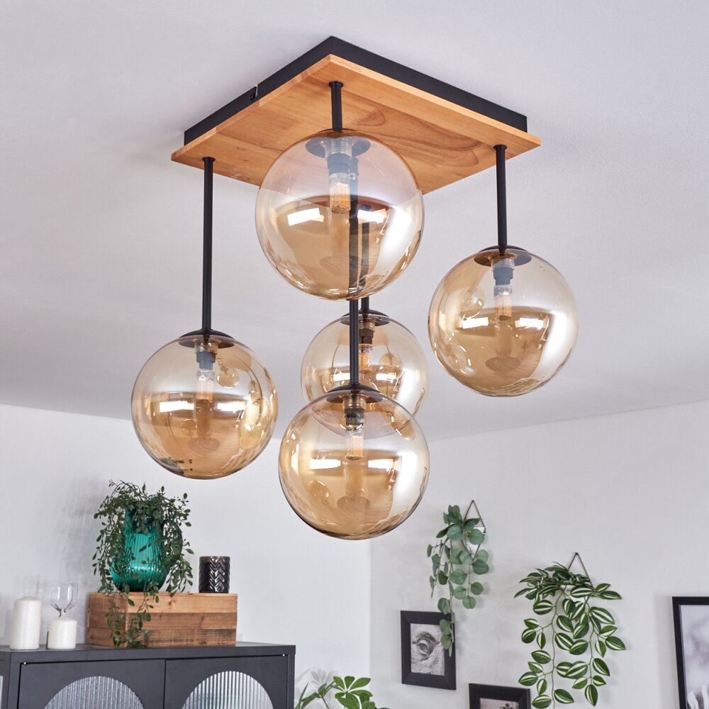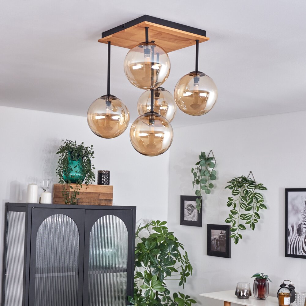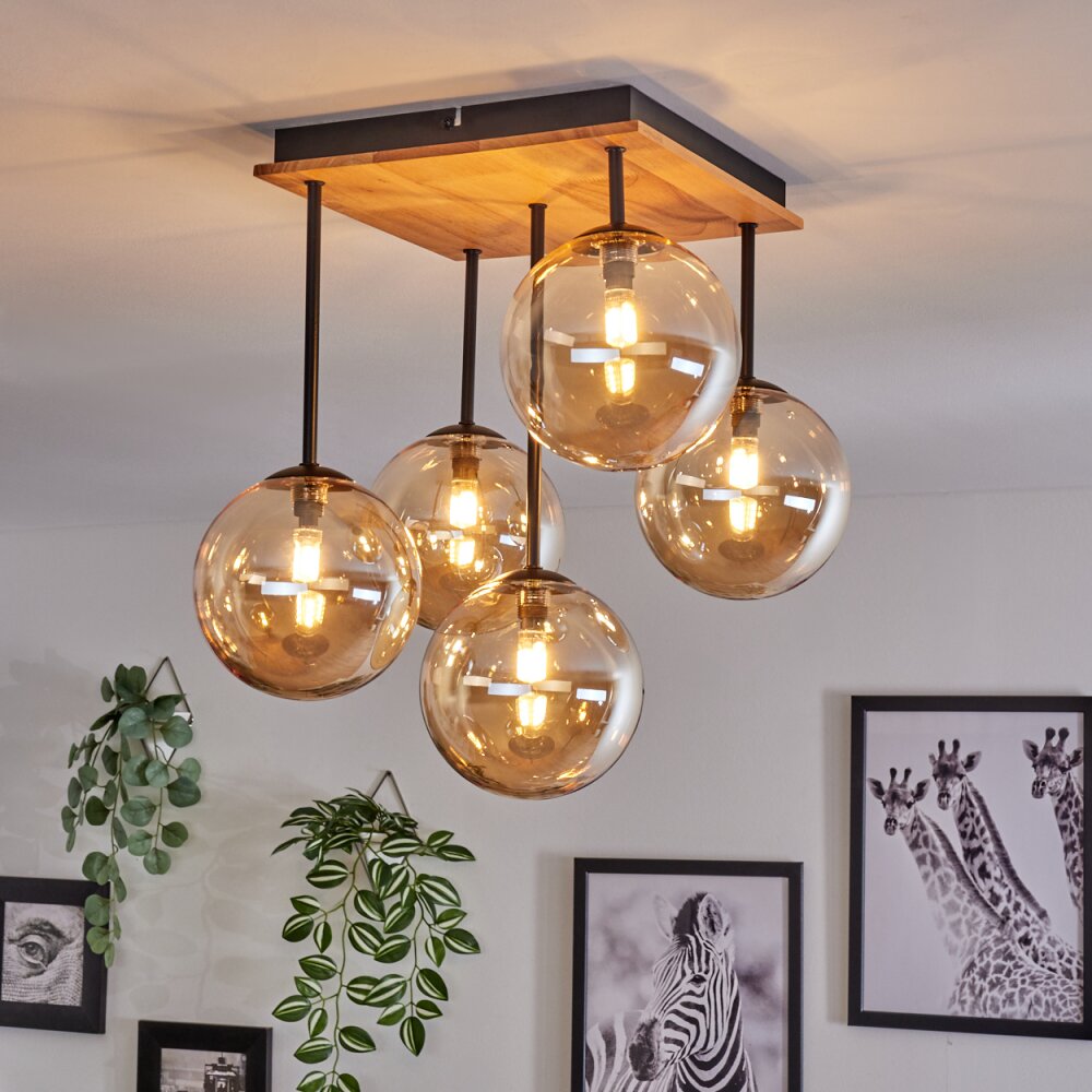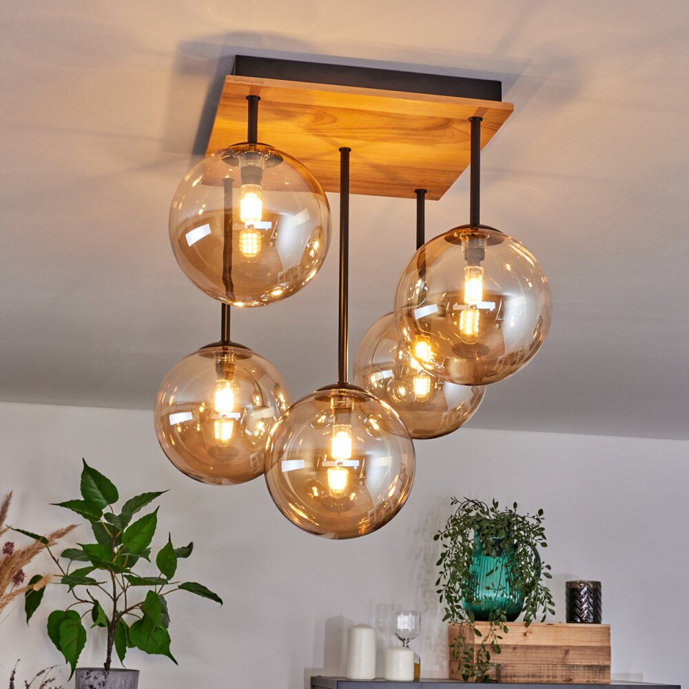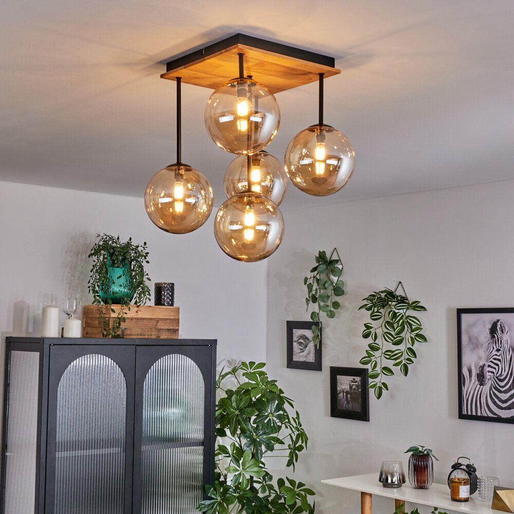 Chehalis Plafondlamp - Glas 15 cm Natuurlijke kleuren, Zwart, 5-lichts