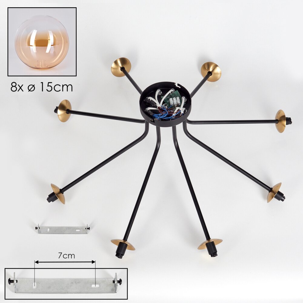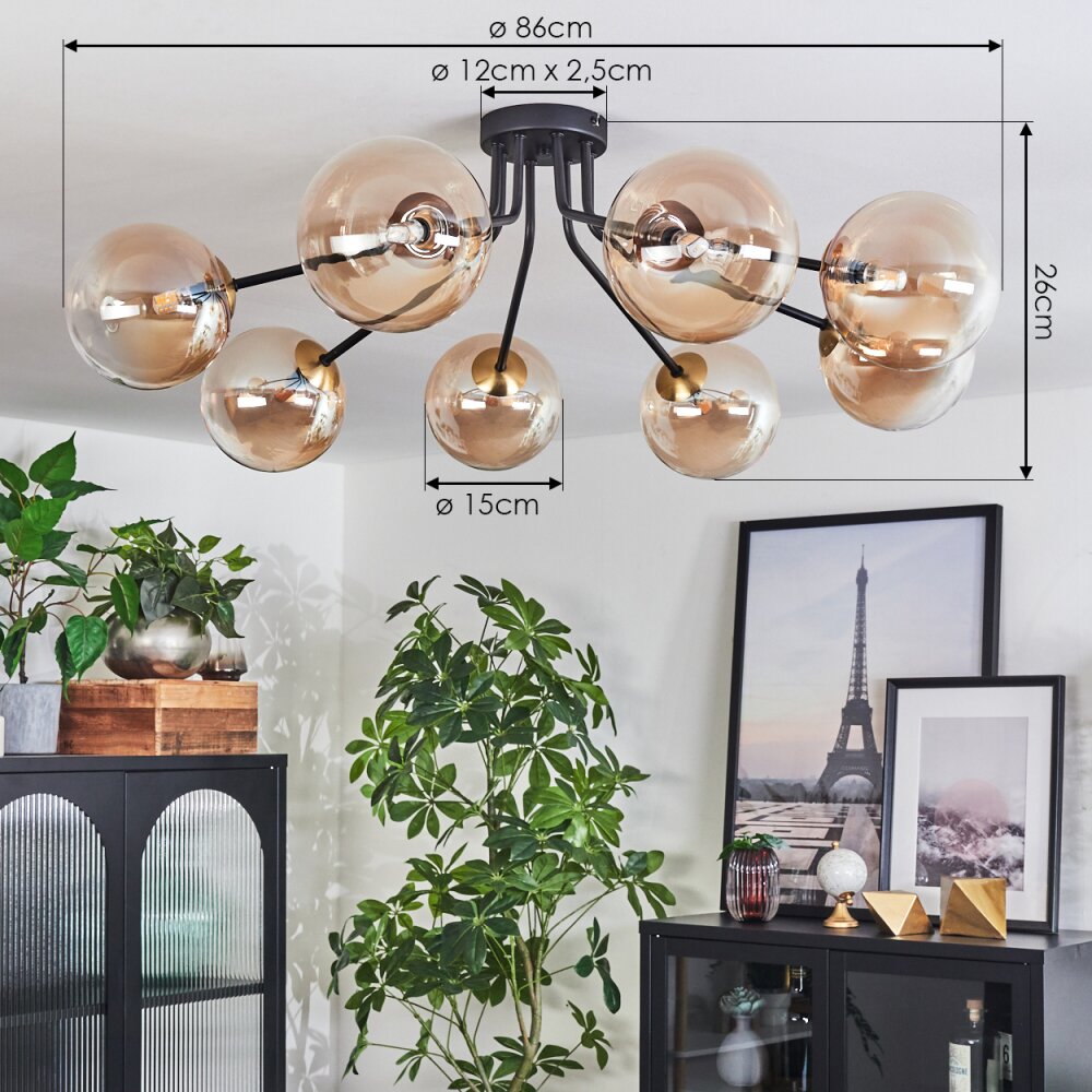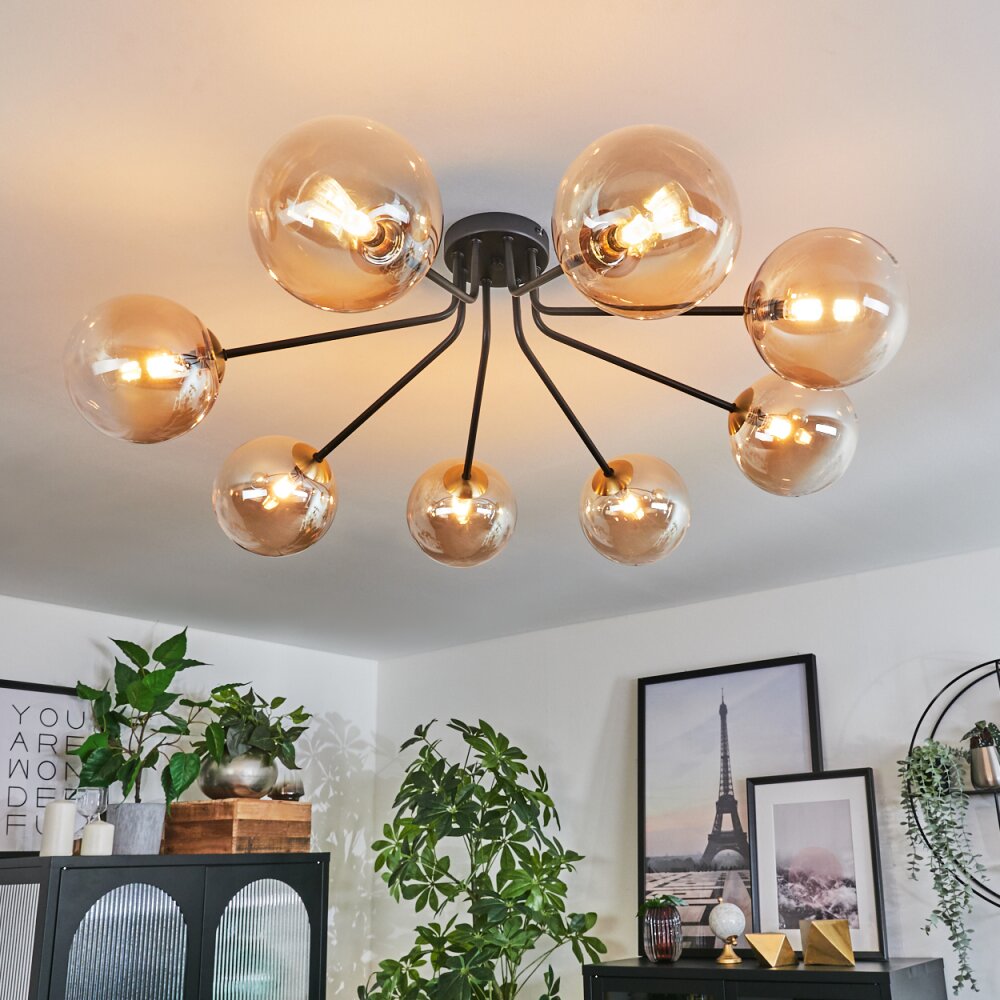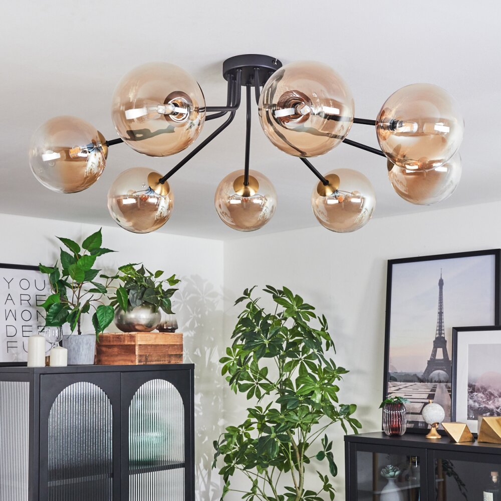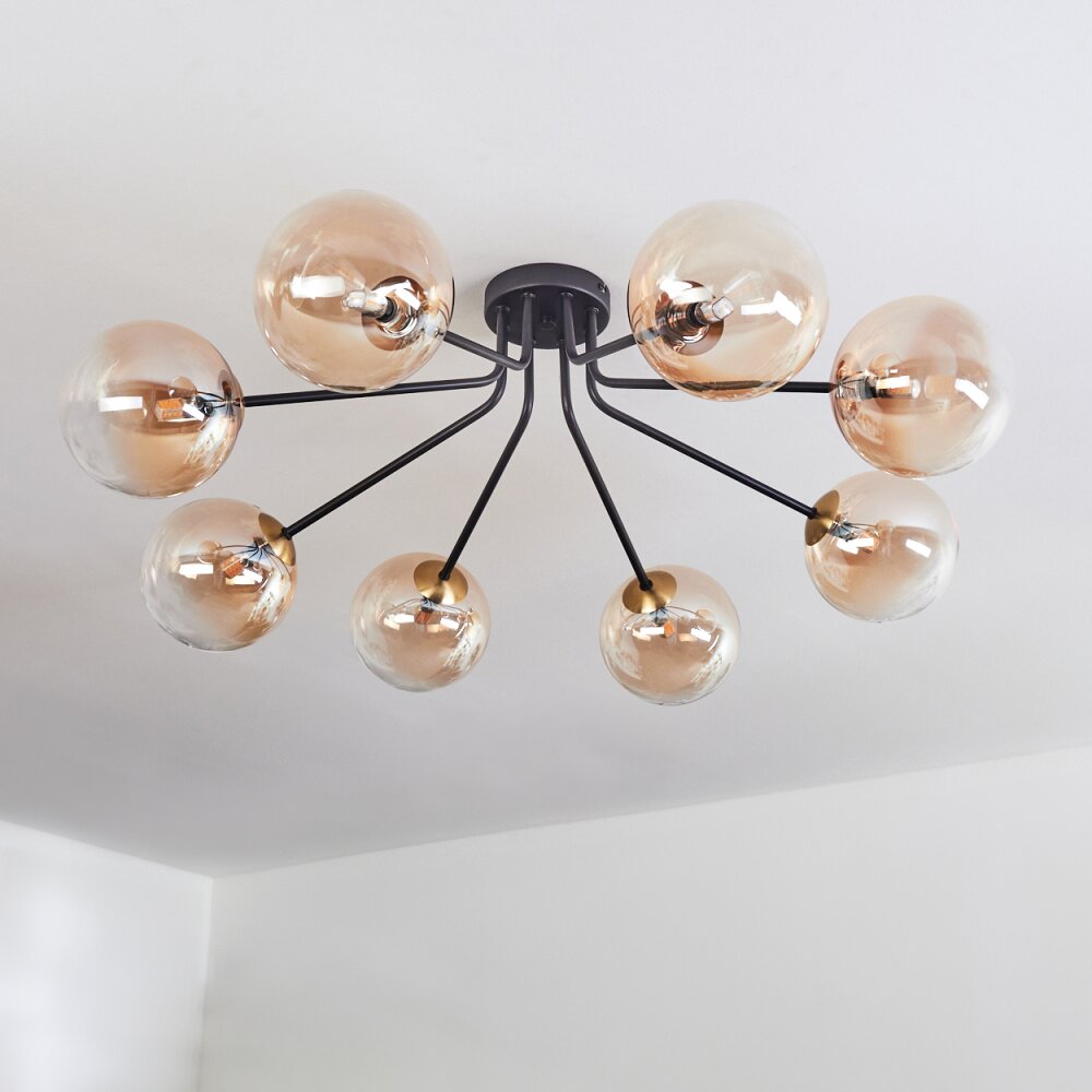 Chehalis Plafondlamp - Glas 15 cm Goud, Zwart, 8-lichts