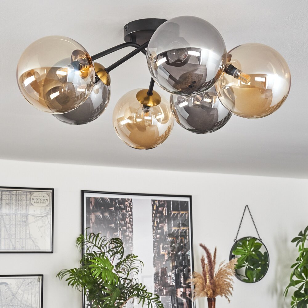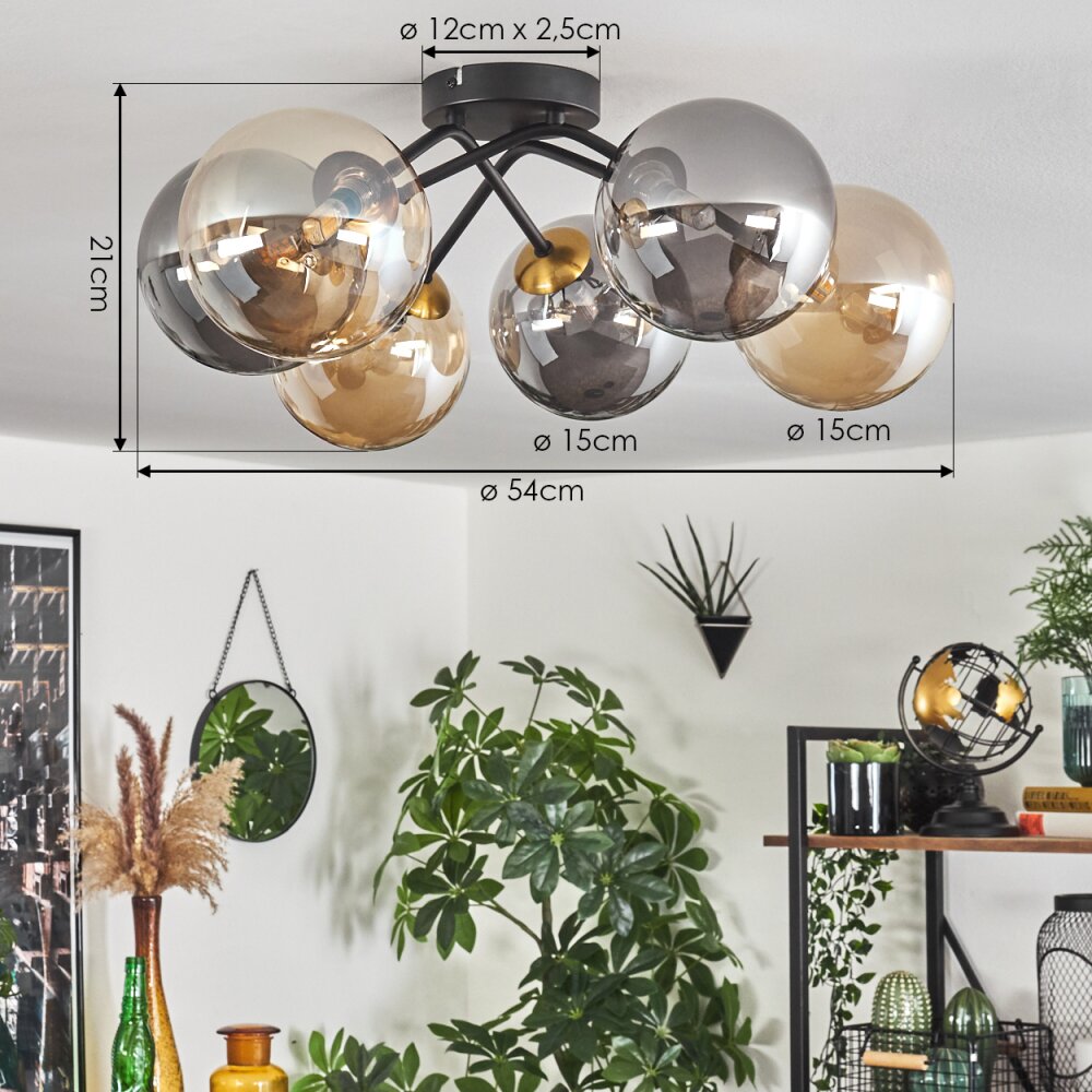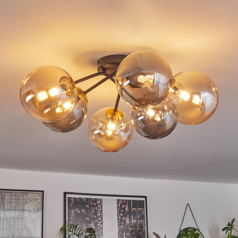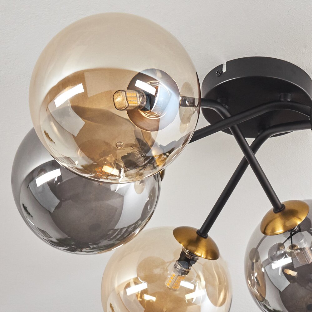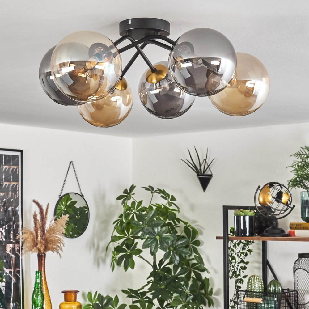 Chehalis Plafondlamp - Glas 15 cm Goud, Zwart, 6-lichts