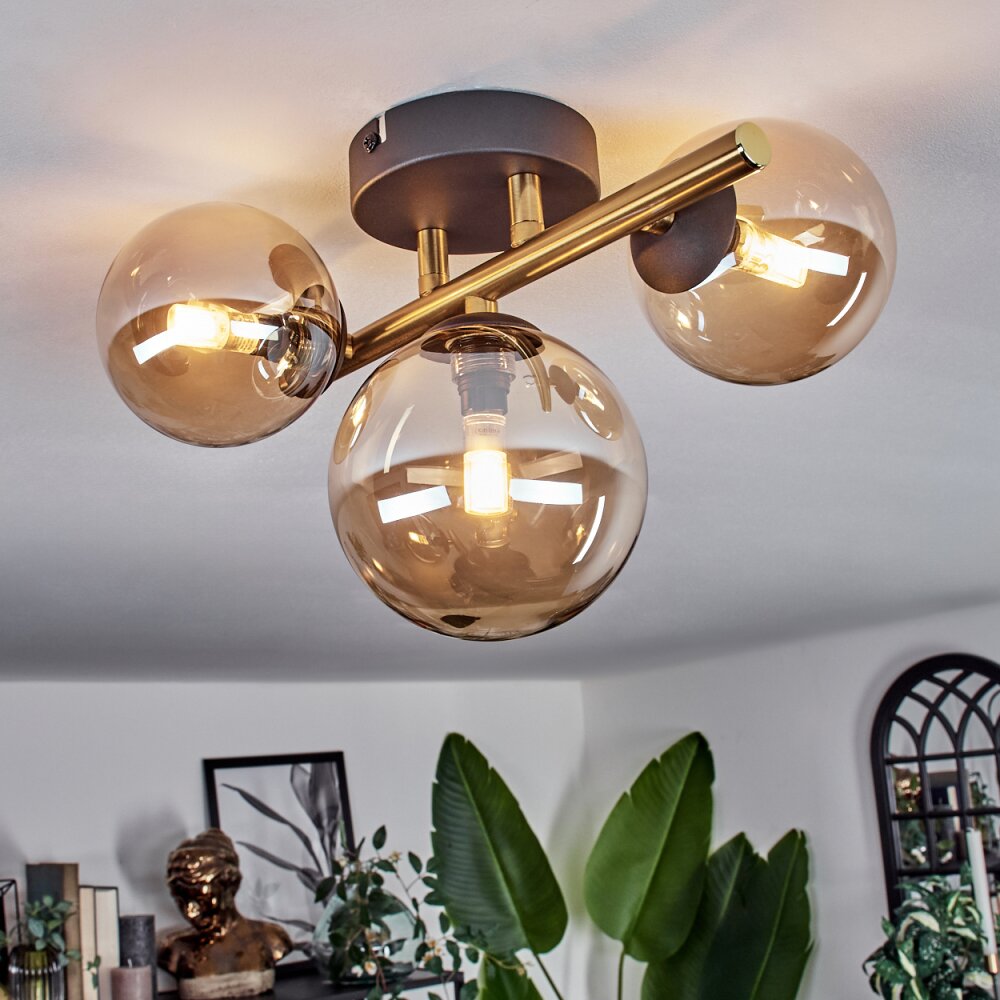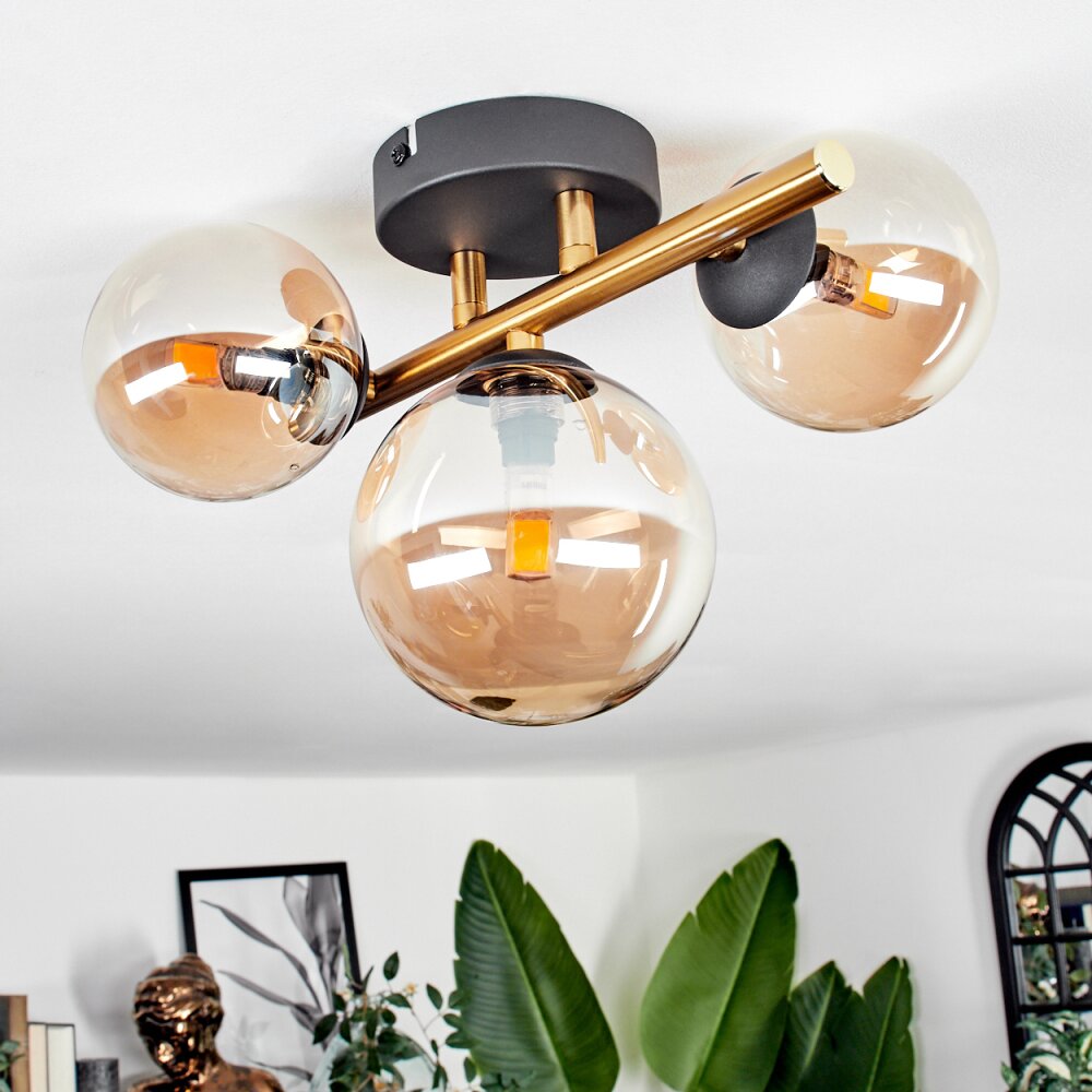 Chehalis Plafondlamp - Glas Goud, Zwart, 3-lichts