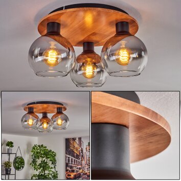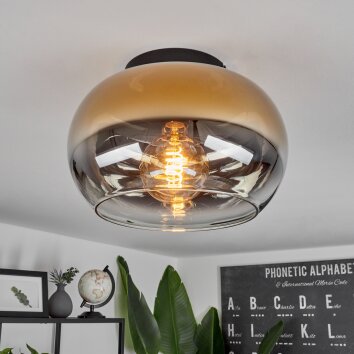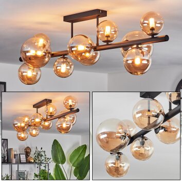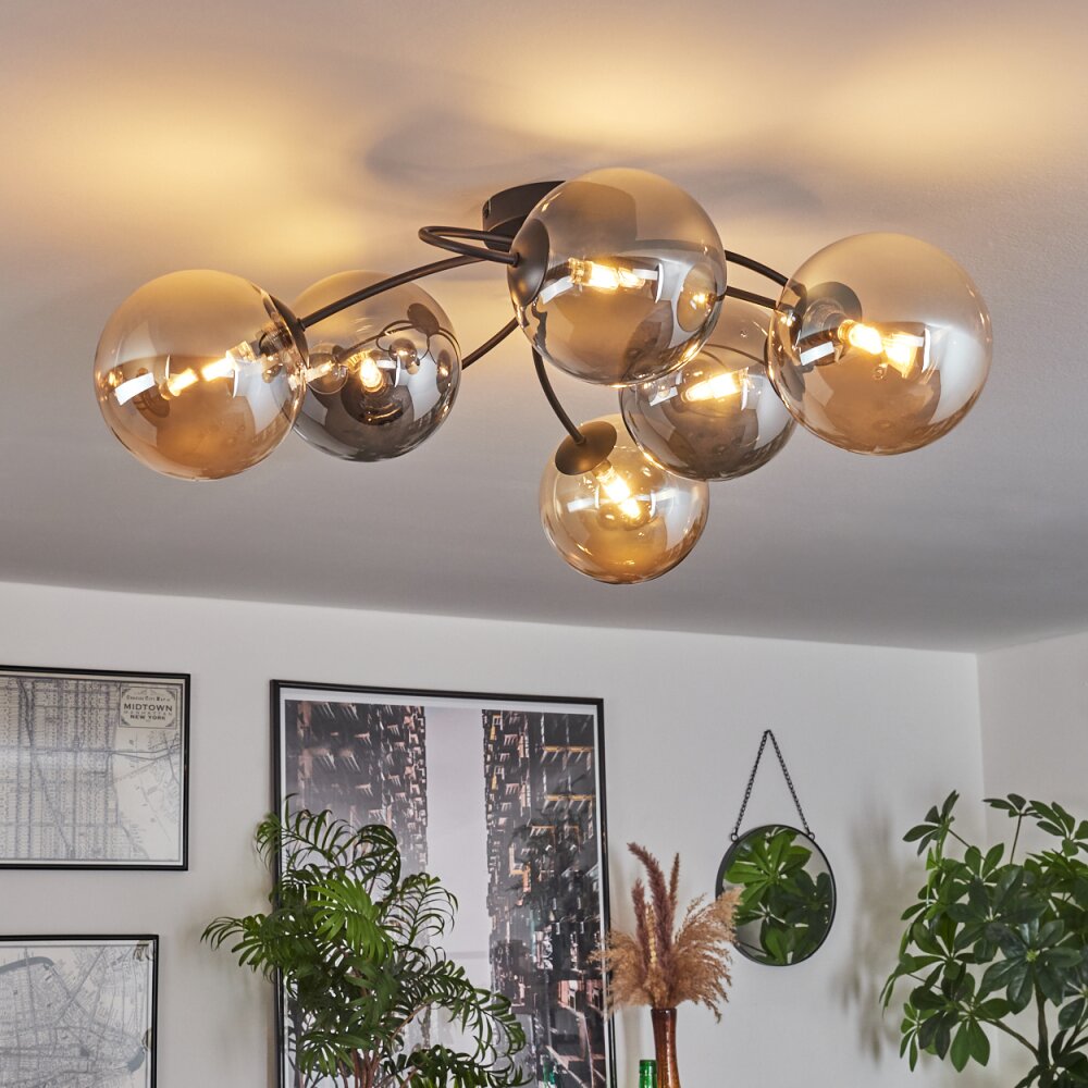 Chehalis Plafondlamp - Glas Amber, Rookkleurig, 6-lichts