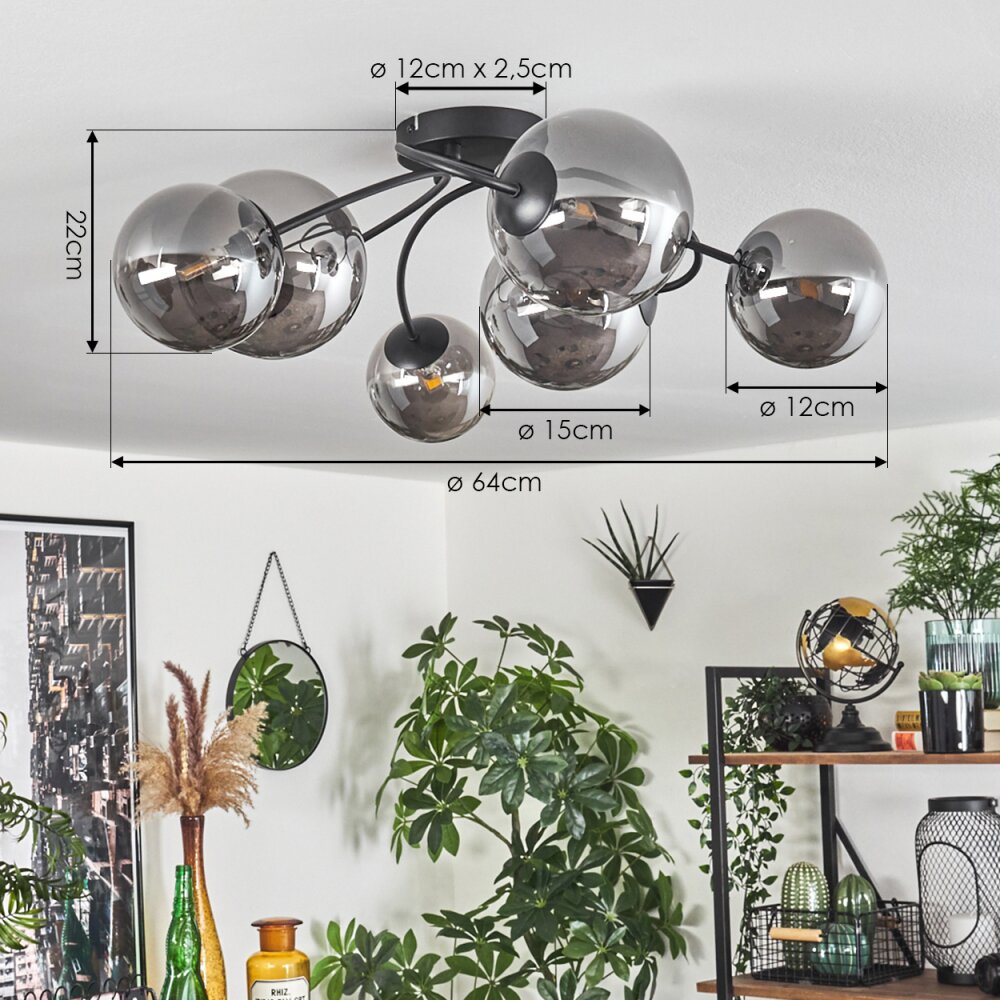 Chehalis Plafondlamp - Glas Rookkleurig, 6-lichts