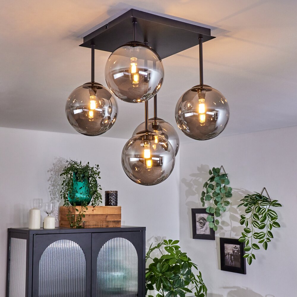 Chehalis Plafondlamp - Glas Rookkleurig, 5-lichts