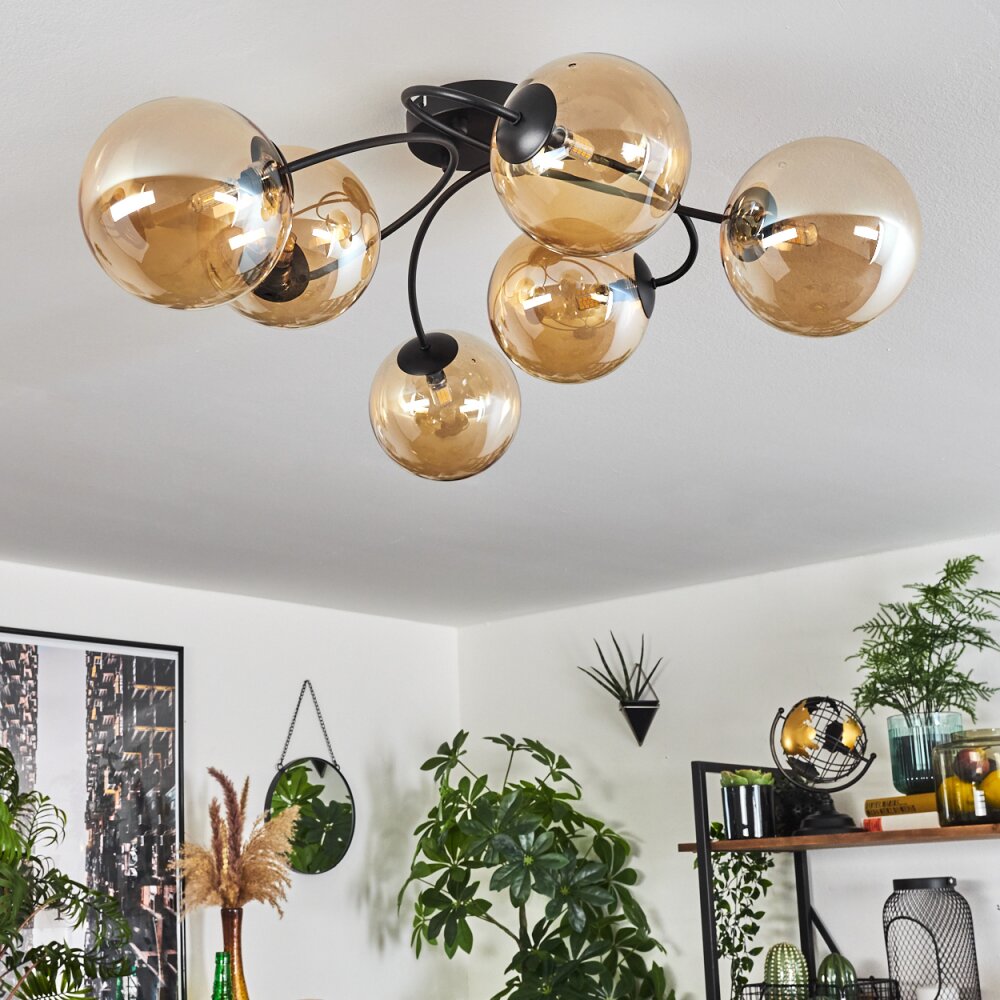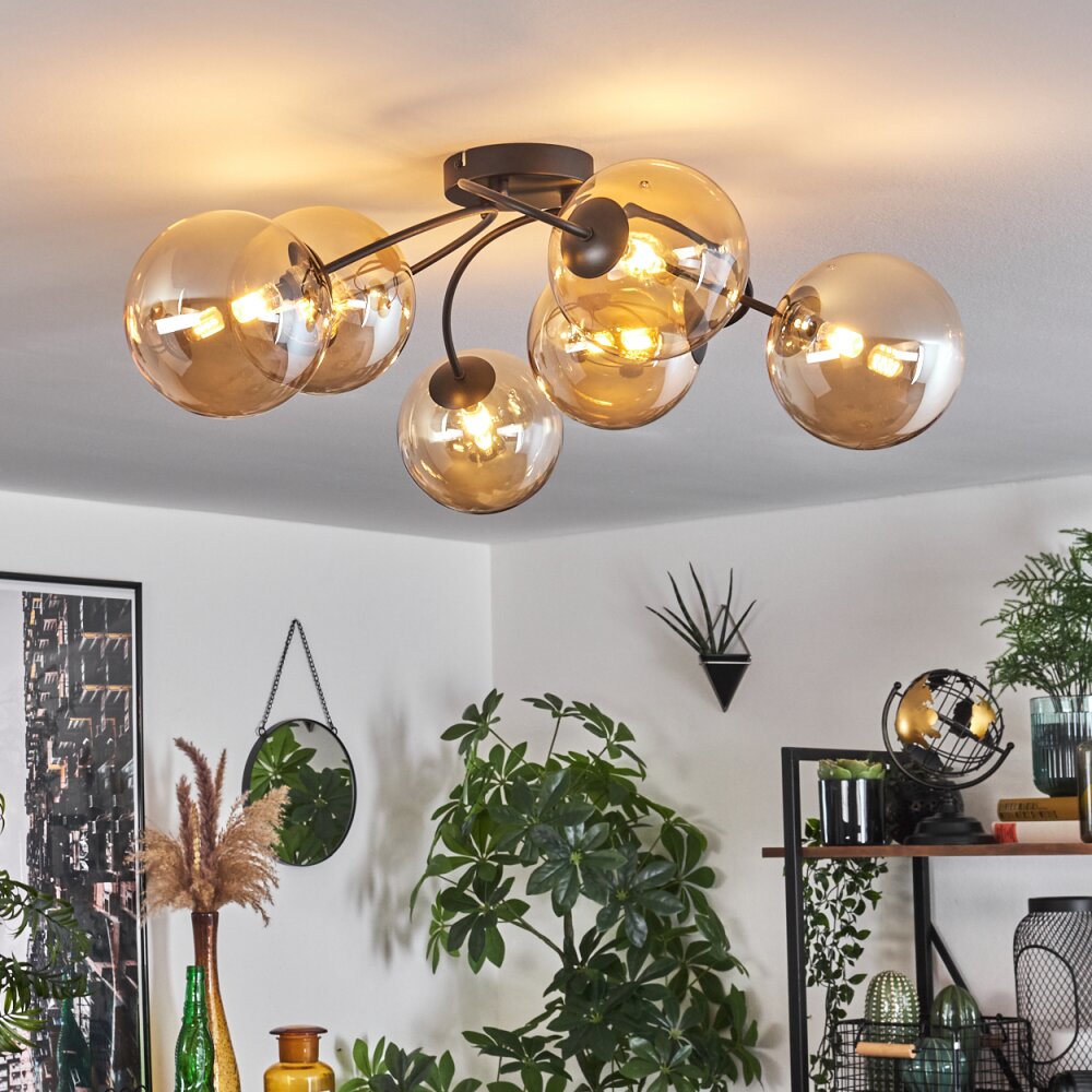 Chehalis Plafondlamp - Glas Amber, 6-lichts