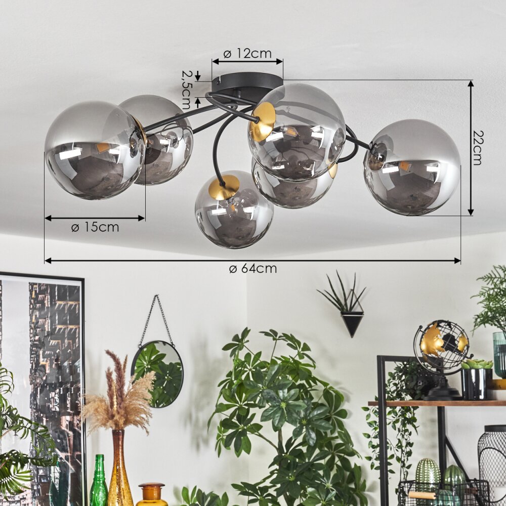 Chehalis Plafondlamp Goud, Zwart, 6-lichts