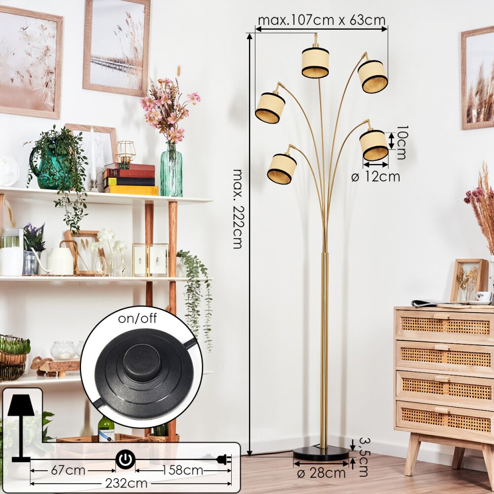Chellas Staande lamp Messing, Zwart, 5-lichts