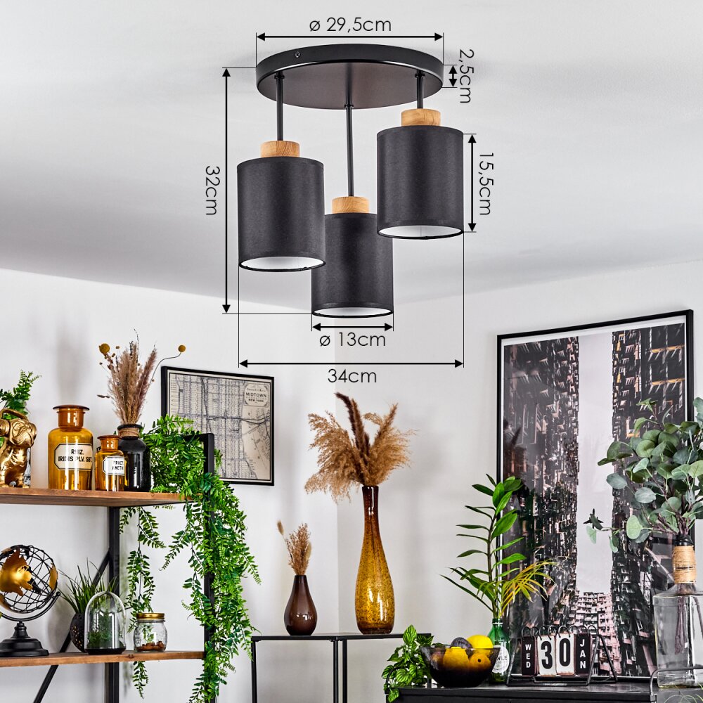 Alsen Plafondlamp Natuurlijke kleuren, Zwart, 3-lichts