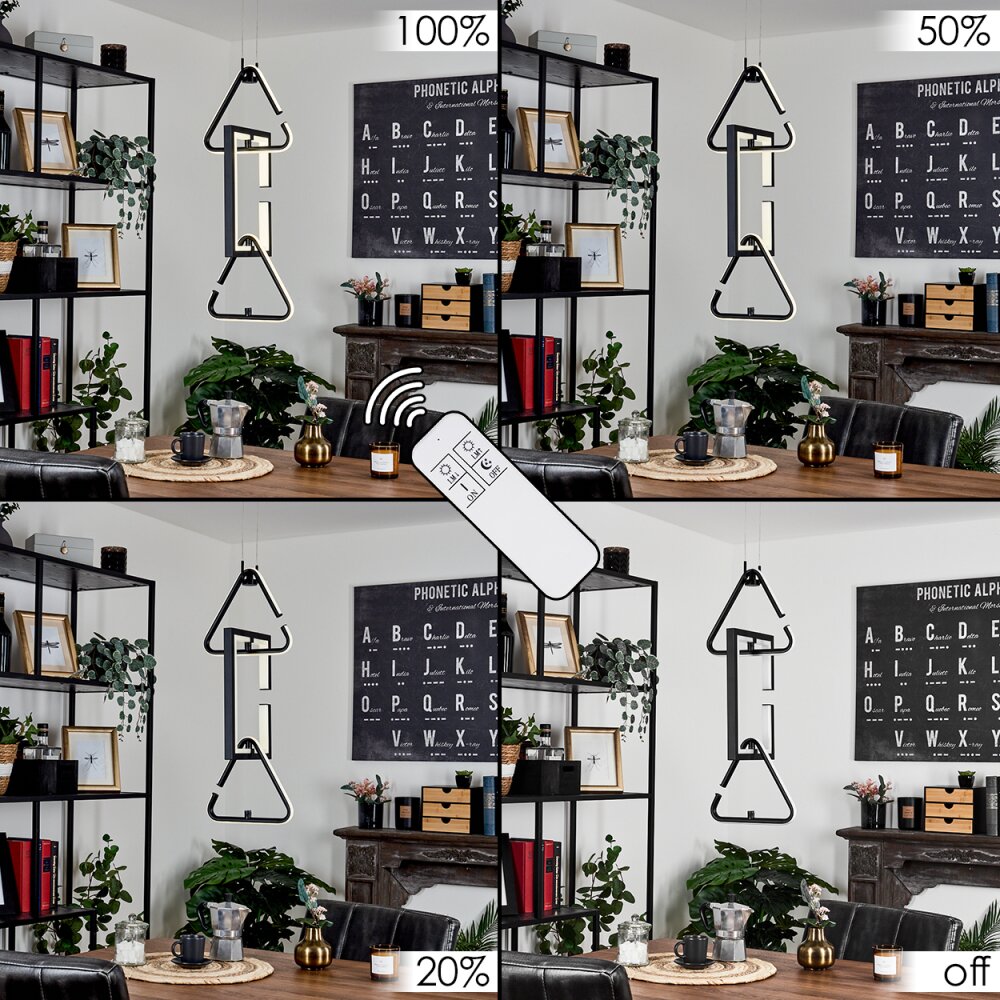 Chlak Hanglamp LED Zwart, 3-lichts, Afstandsbediening