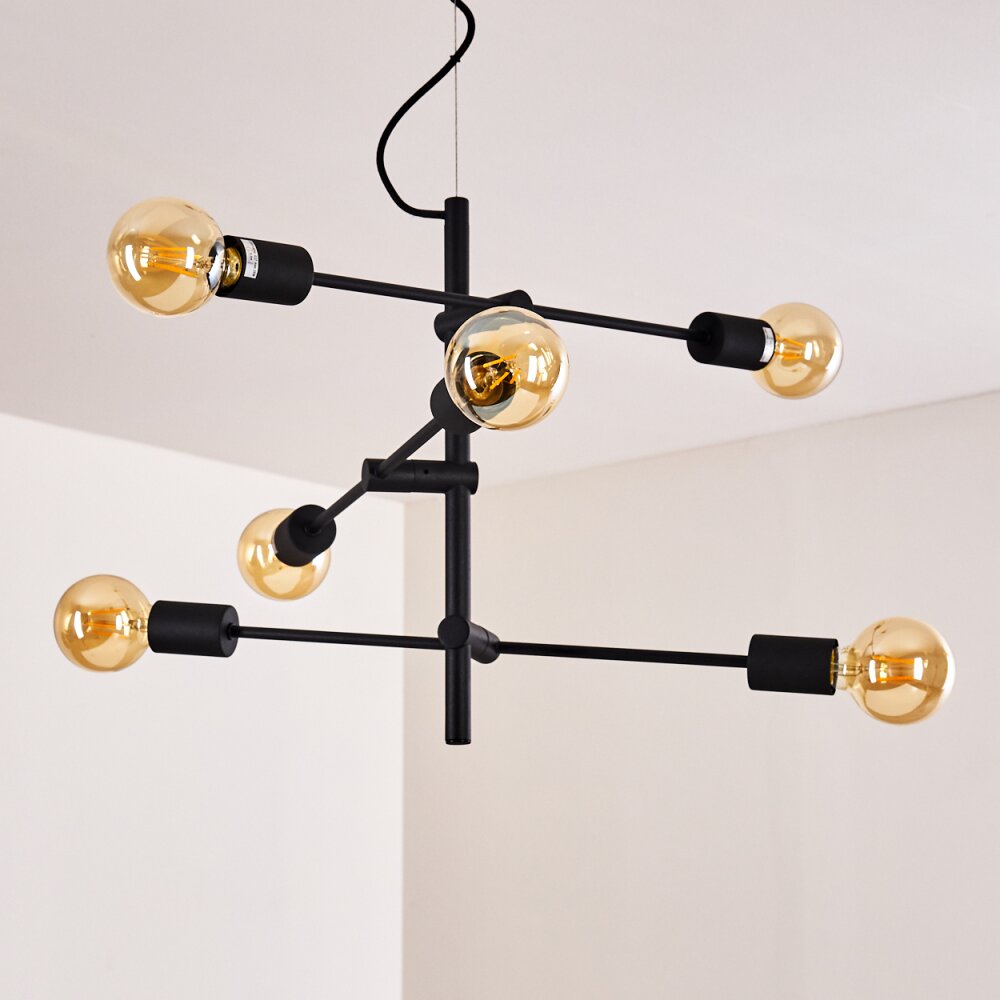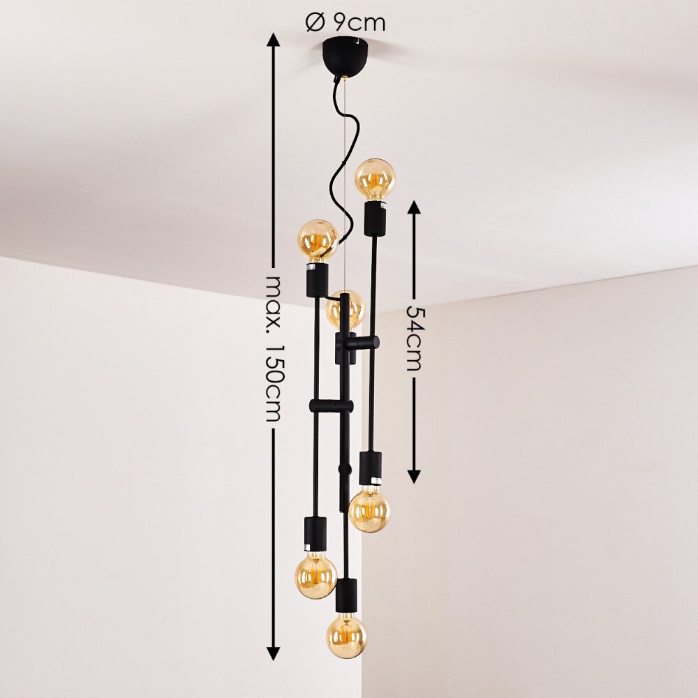 Yaak Hanglamp Hout licht, Zwart, 6-lichts