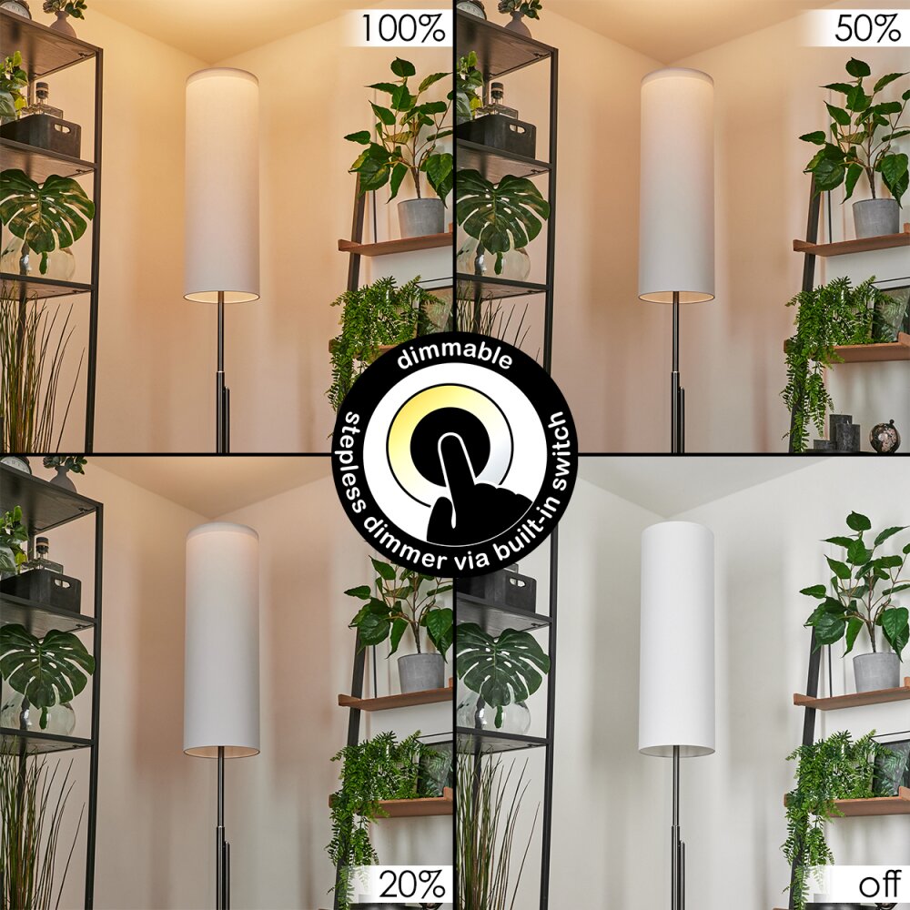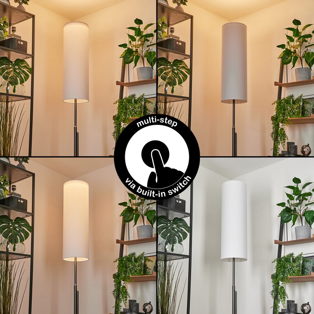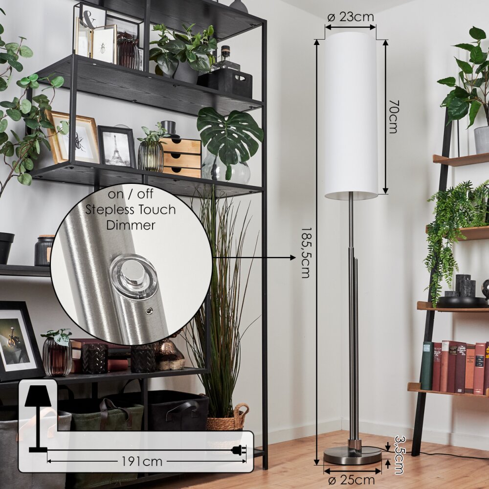 Bernardino Staande lamp Nikkel mat, 3-lichts, Stoffen lampenkap
