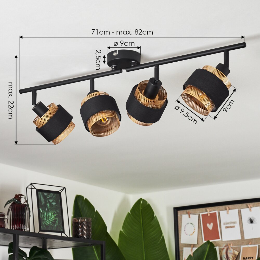 Cottard Plafondlamp Zwart, 4-lichts