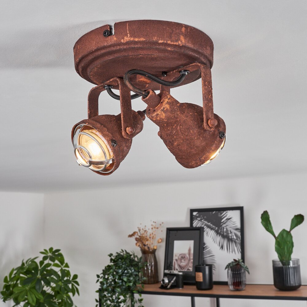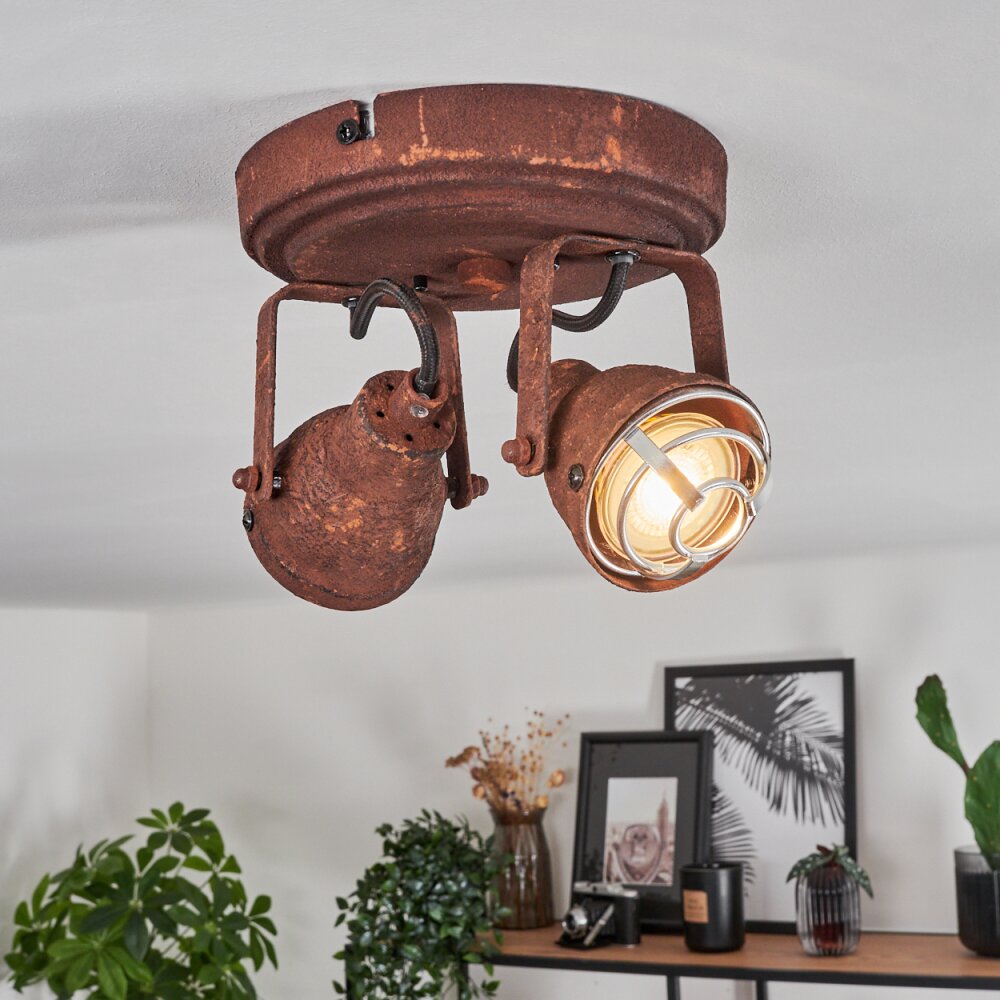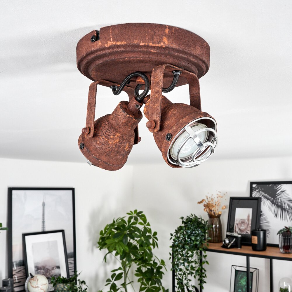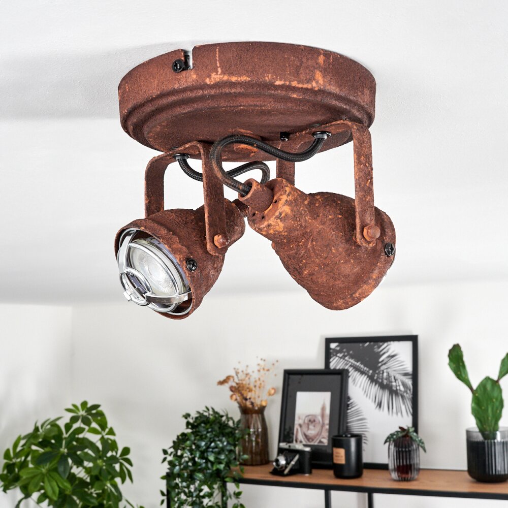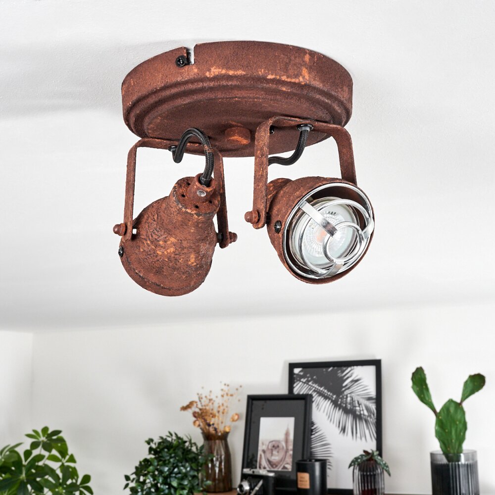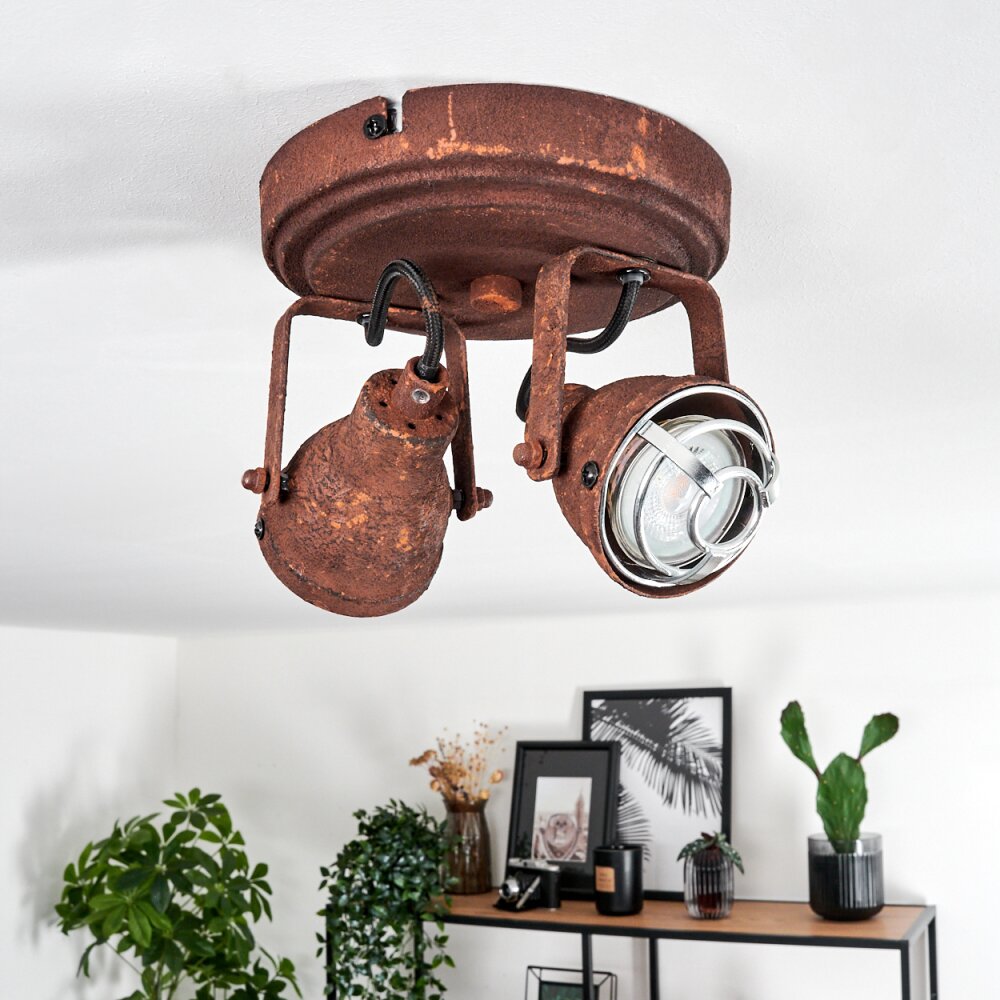 Herford Plafondlamp Hout donker, Roest, 2-lichts
