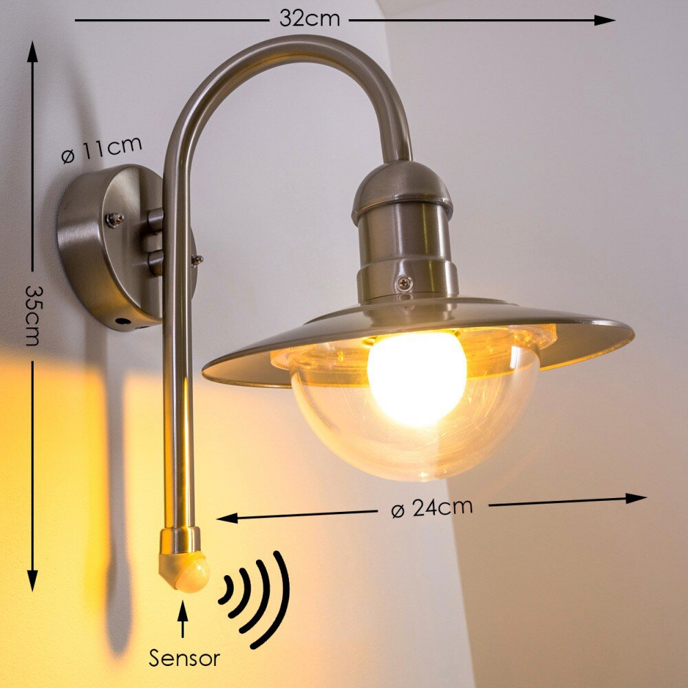 Elima Buiten muurverlichting roestvrij staal, 1-licht, Bewegingsmelder