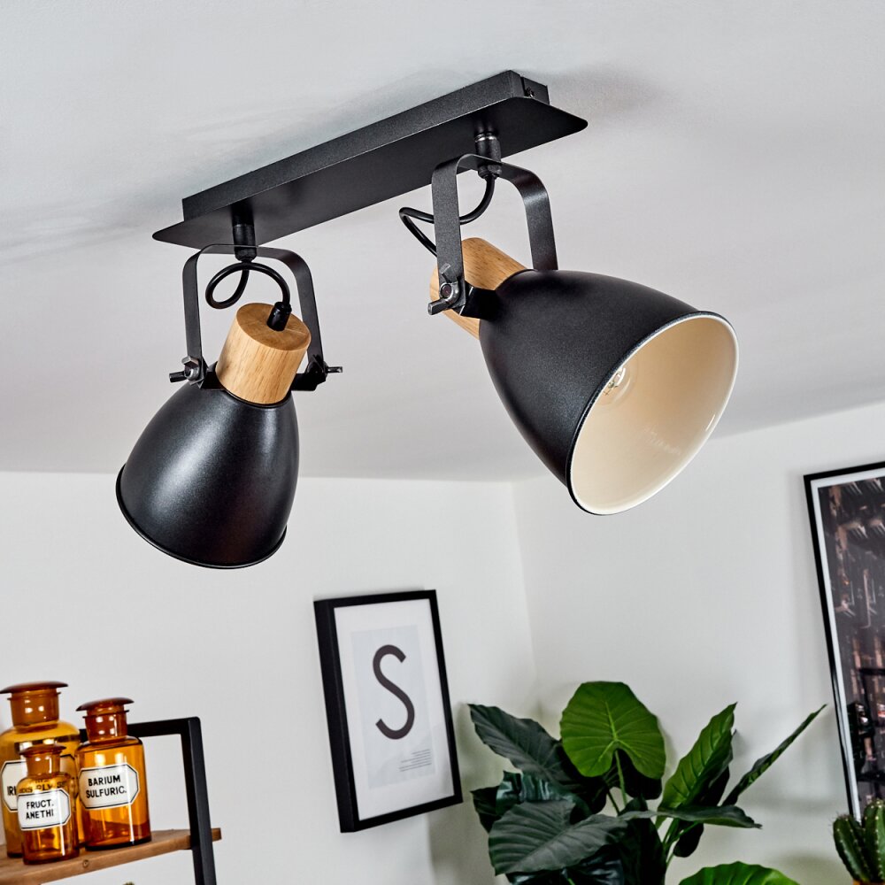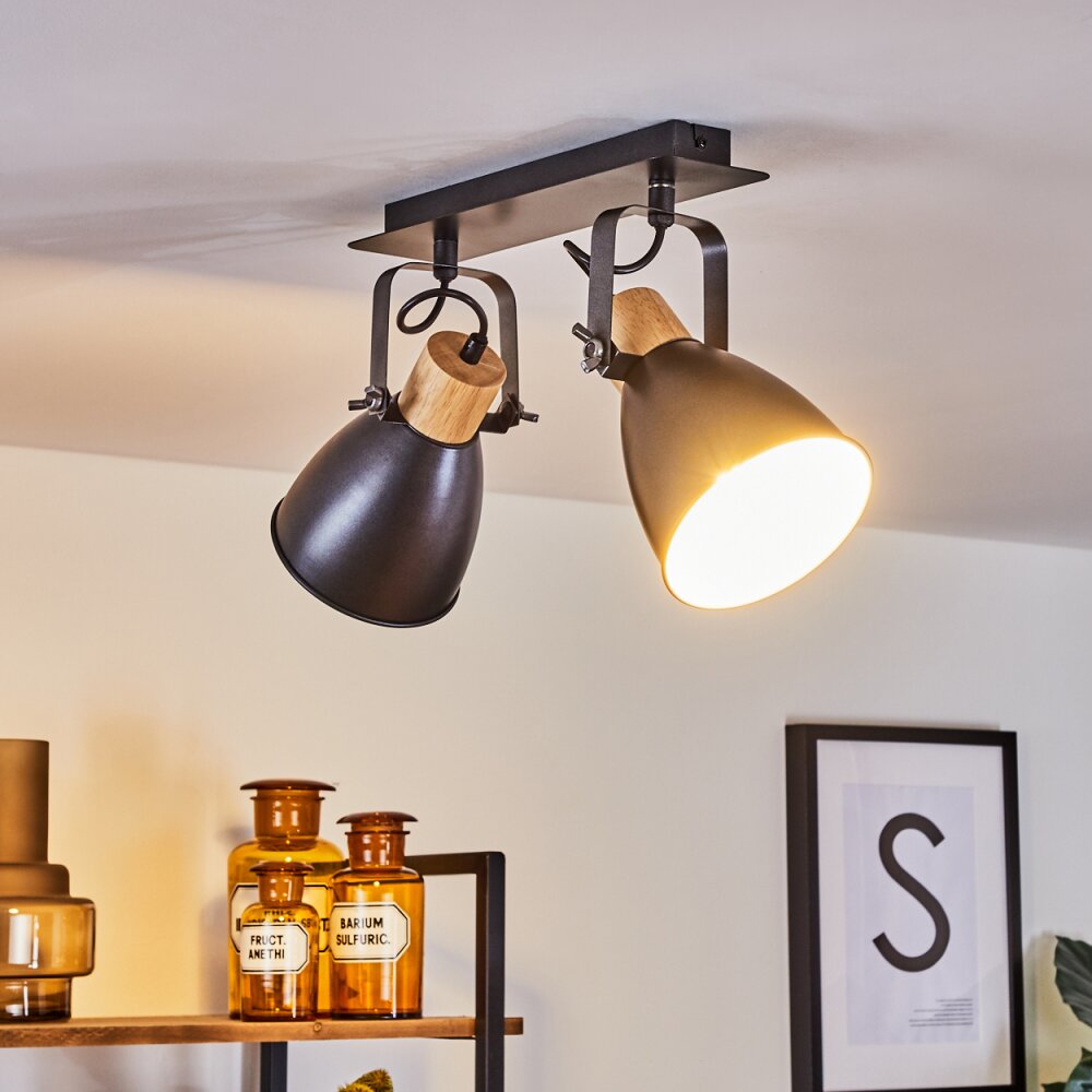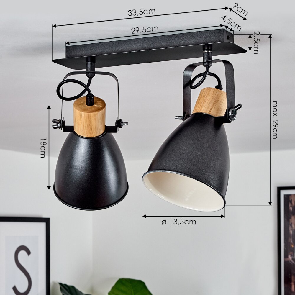Elm Plafondlamp Antraciet, Hout licht, 2-lichts