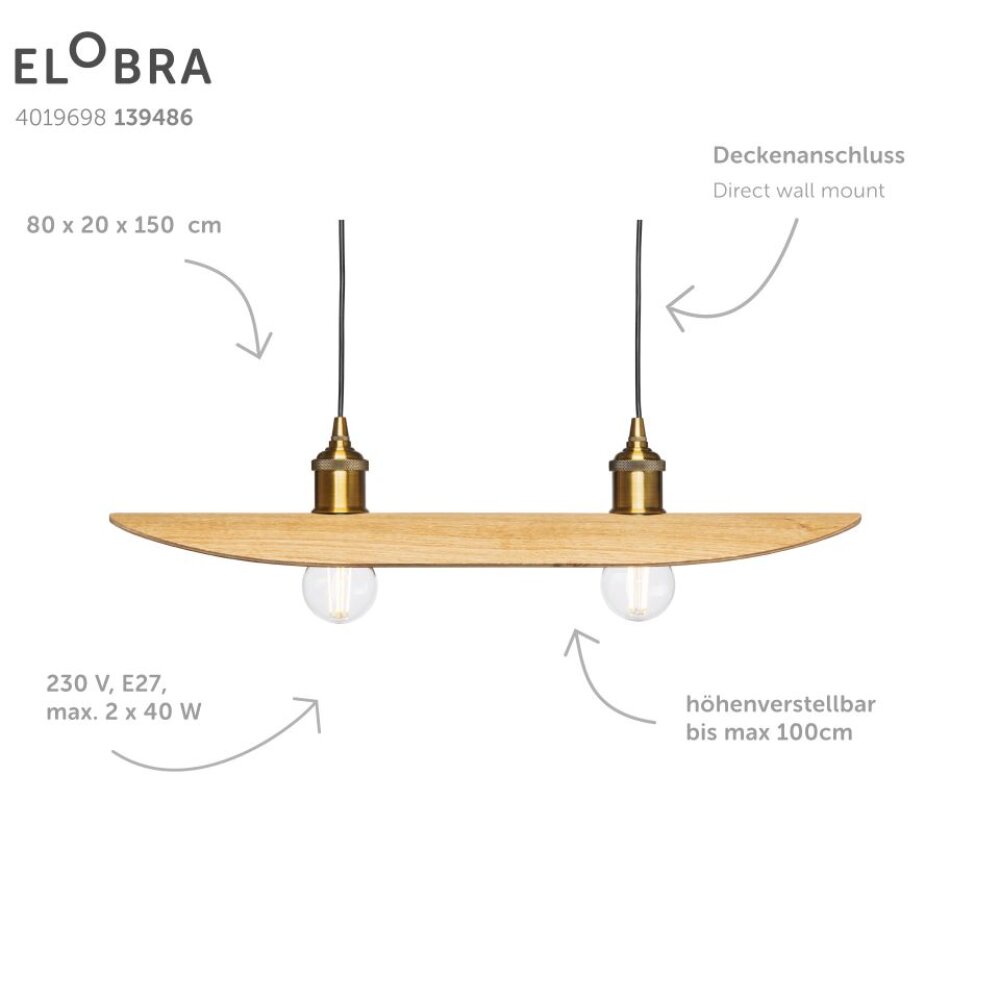 Elobra Colombia Retro Hanglamp Natuurlijke kleuren, 2-lichts