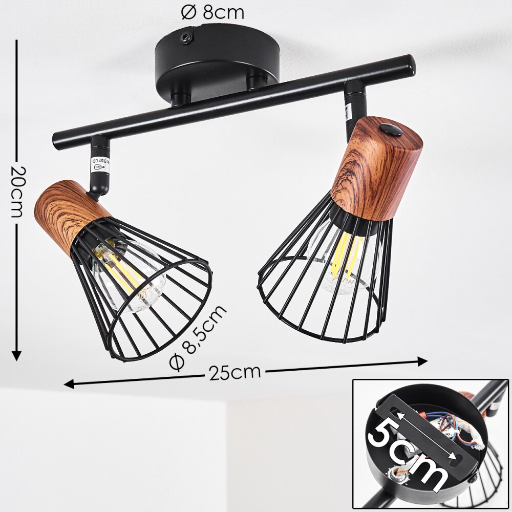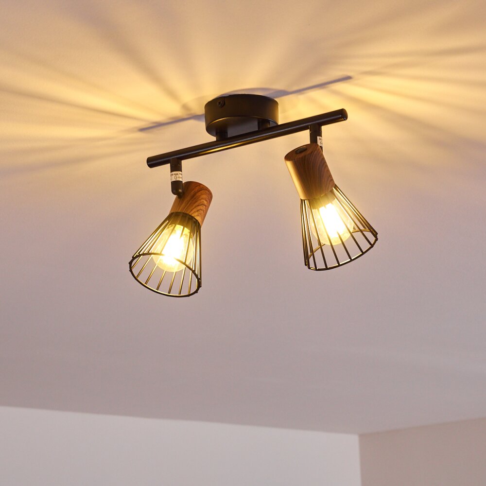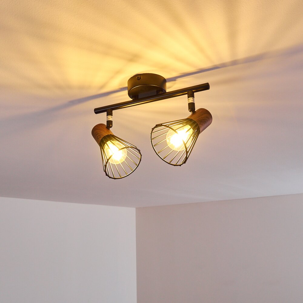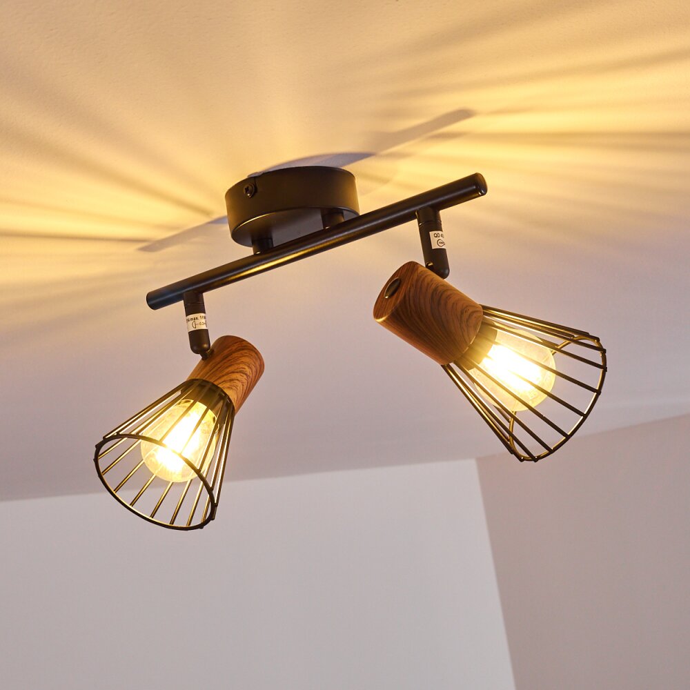 Errested Plafondlamp Hout donker, Zwart, 2-lichts