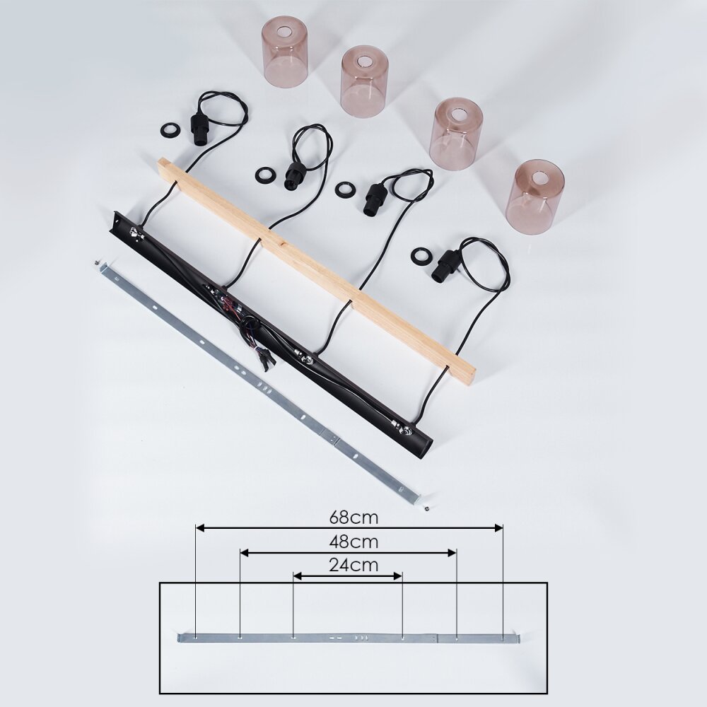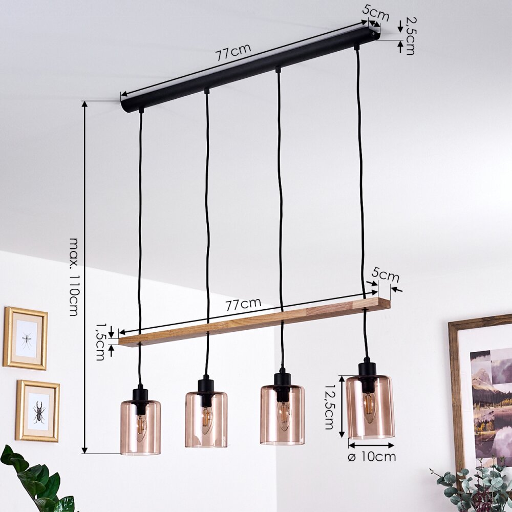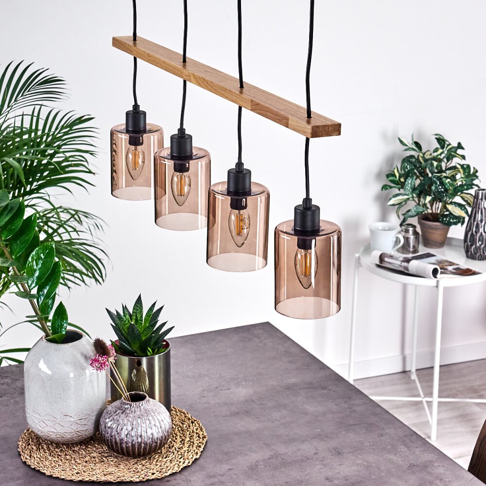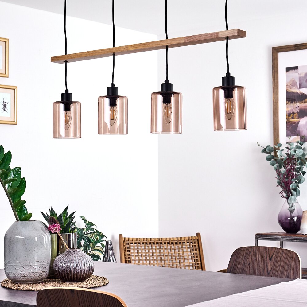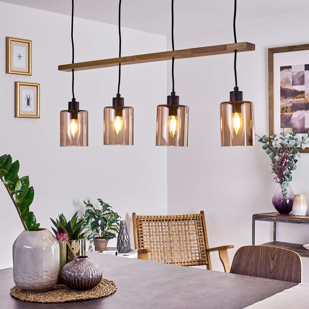 Ethelton Hanglamp Hout donker, Zwart, 4-lichts