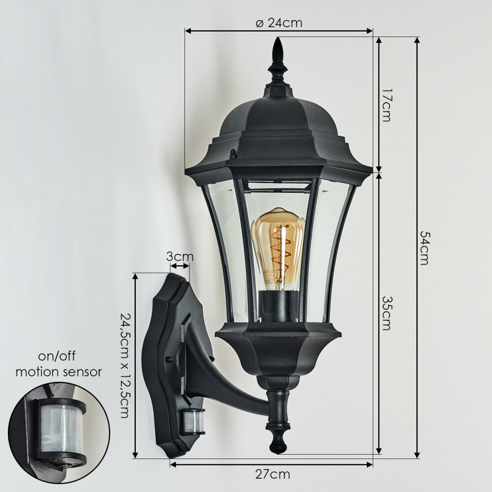 Etoe Buiten muurverlichting Zwart, 1-licht, Bewegingsmelder