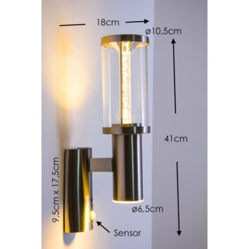 Forli Buiten muurverlichting roestvrij staal, Transparant, Helder, 1-licht