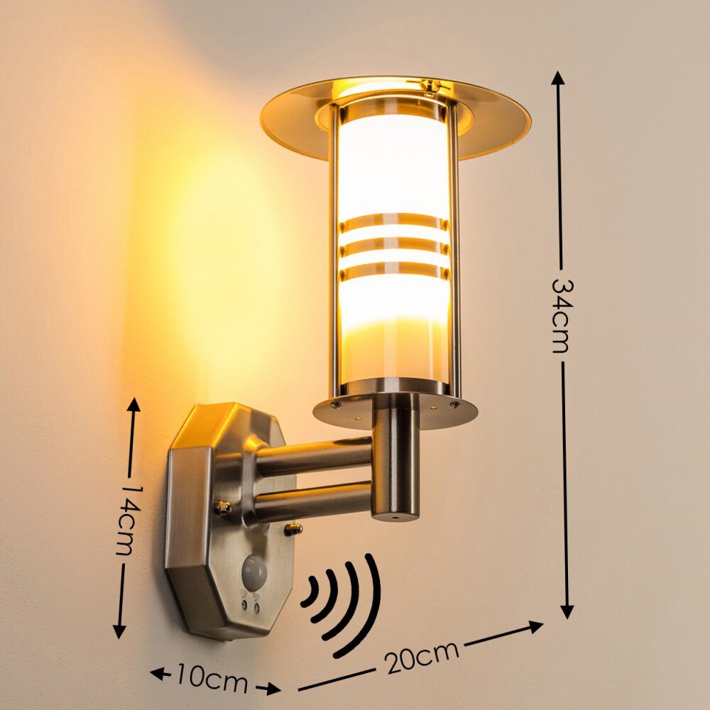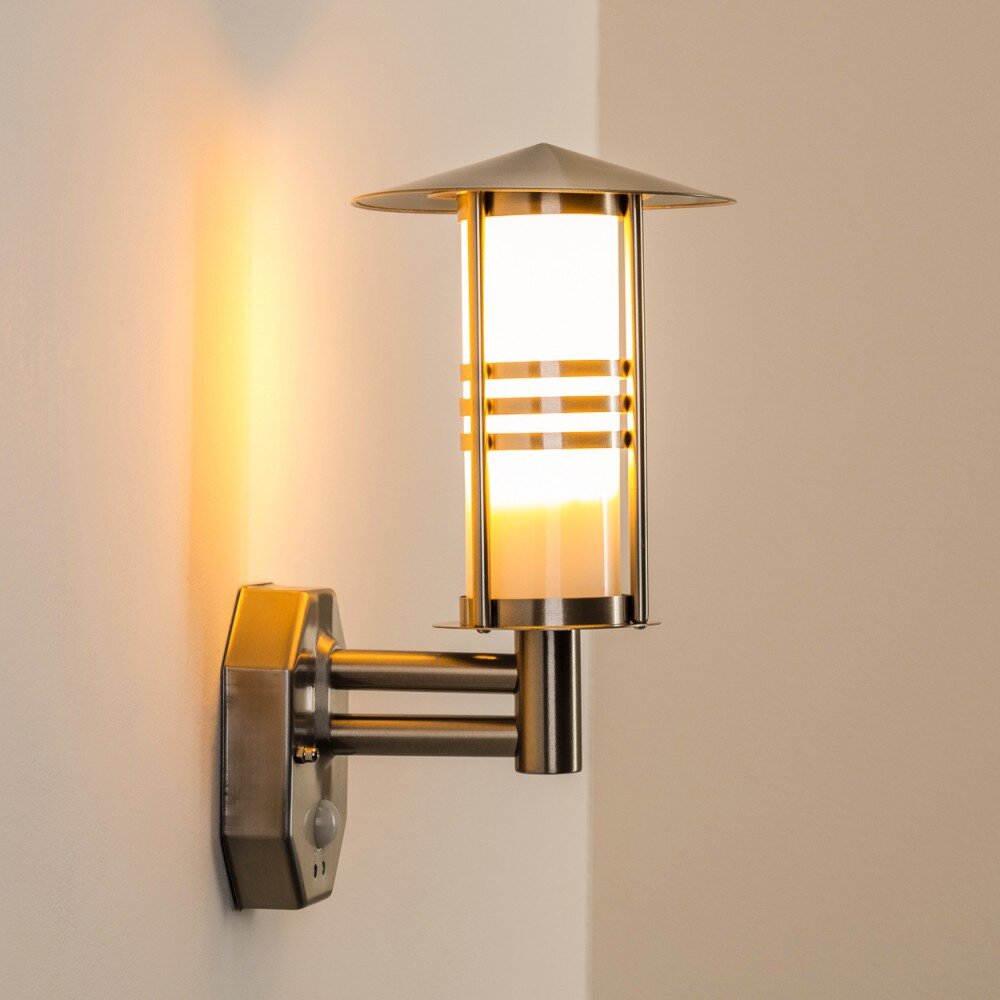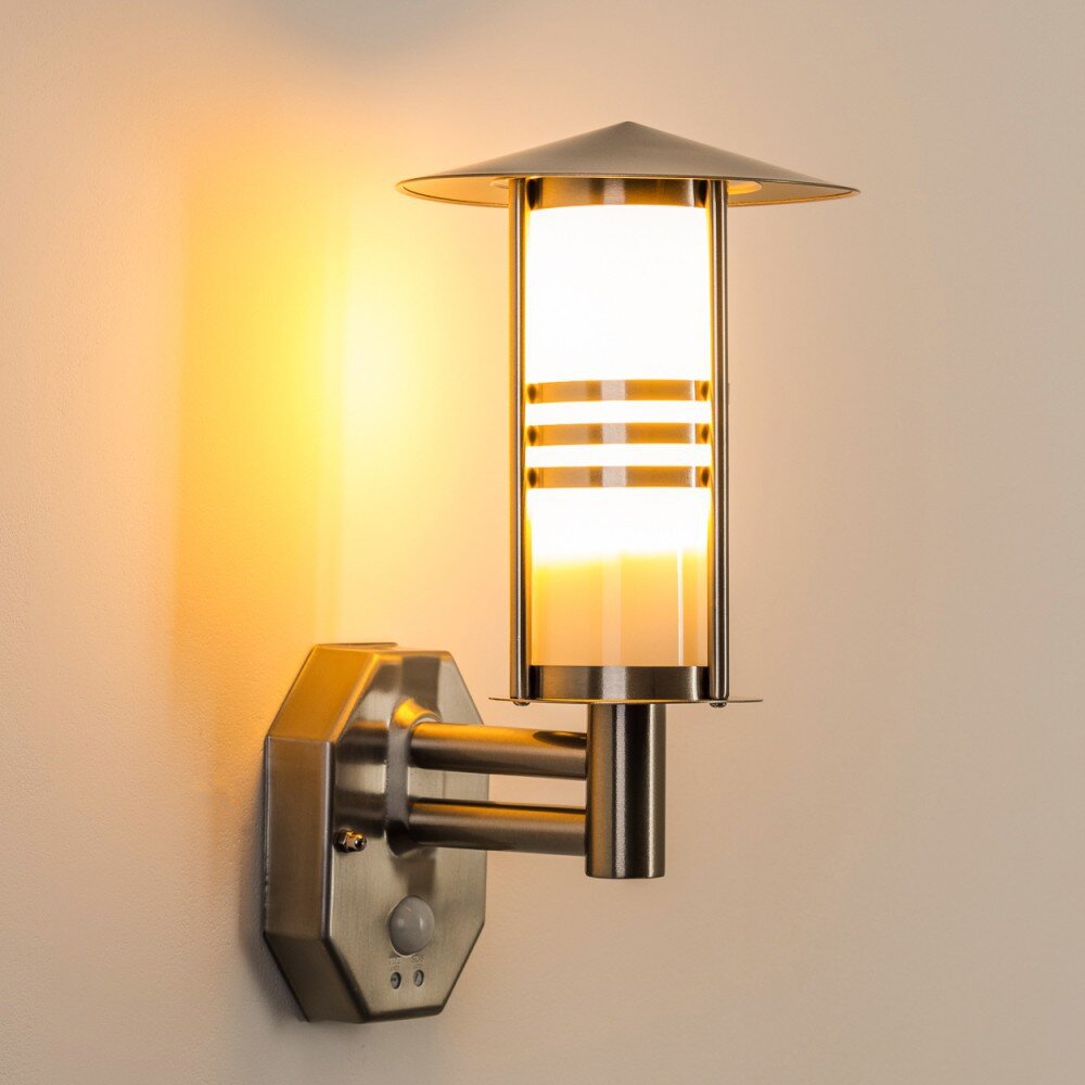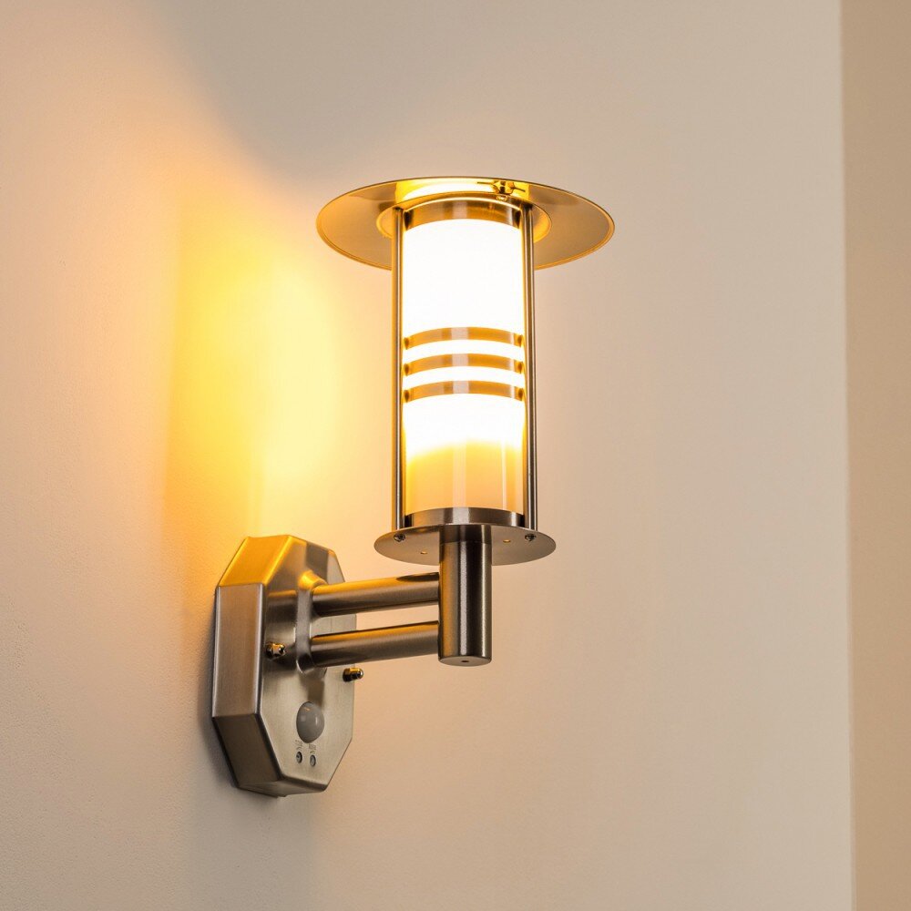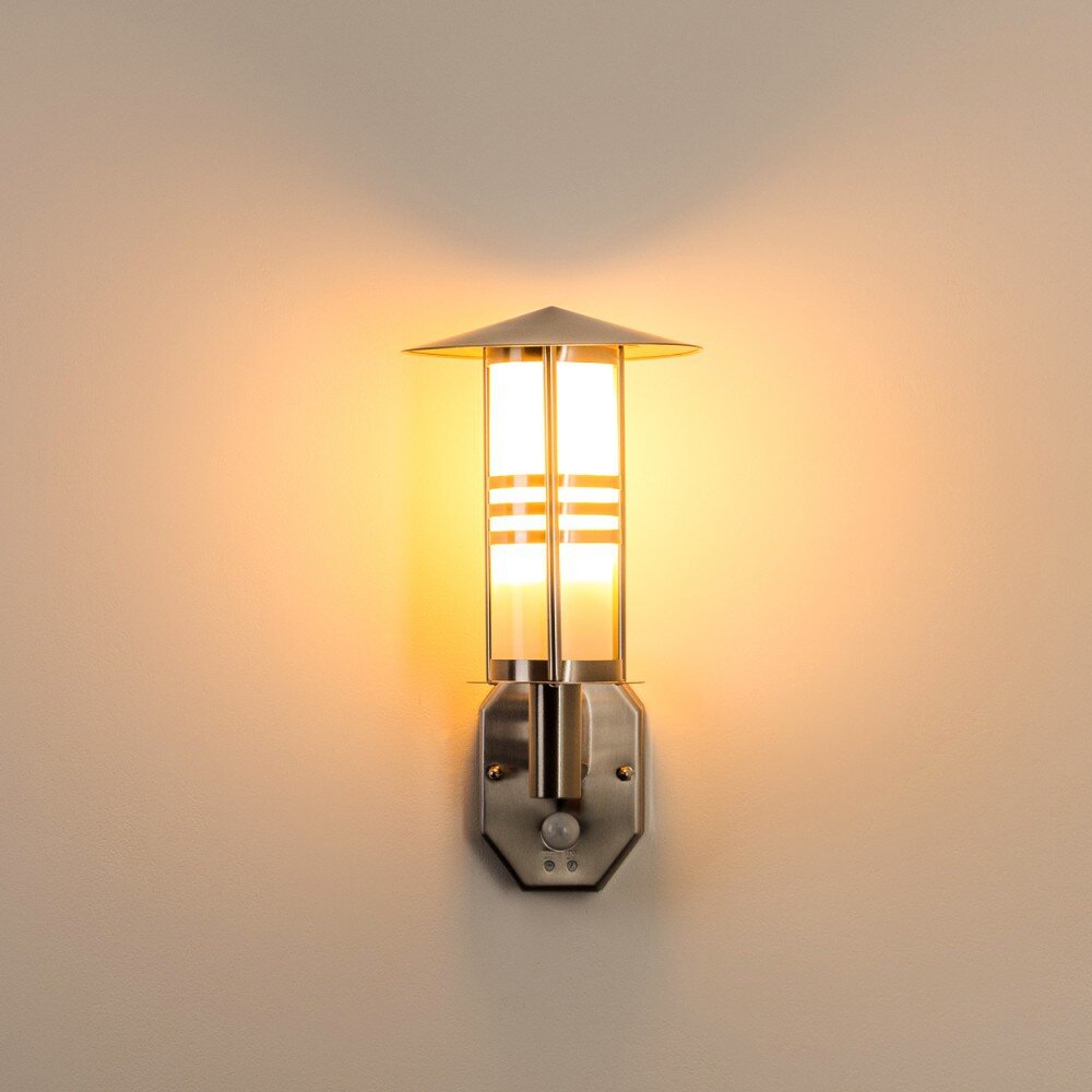 Forli Buiten muurverlichting roestvrij staal, 1-licht, Bewegingsmelder