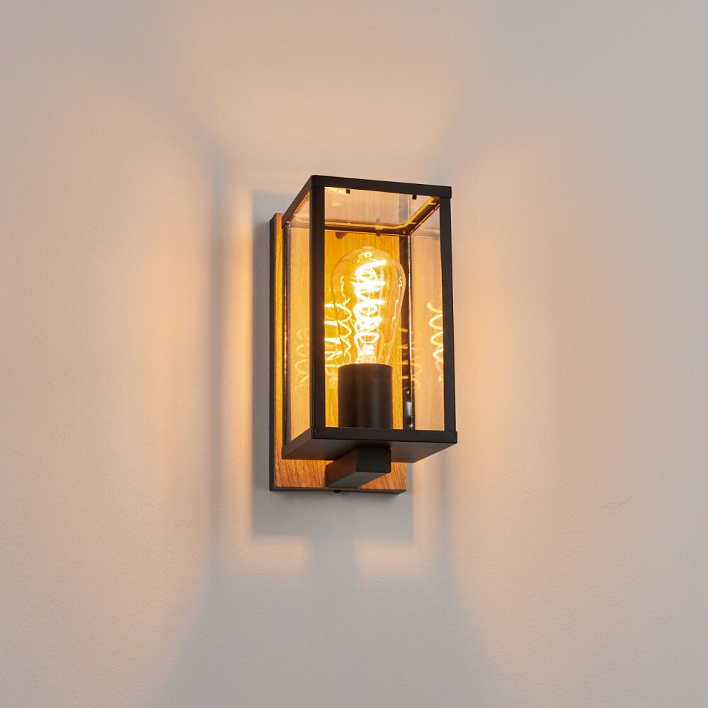 Fortunies Buiten muurverlichting Hout licht, houtlook, Zwart, 1-licht