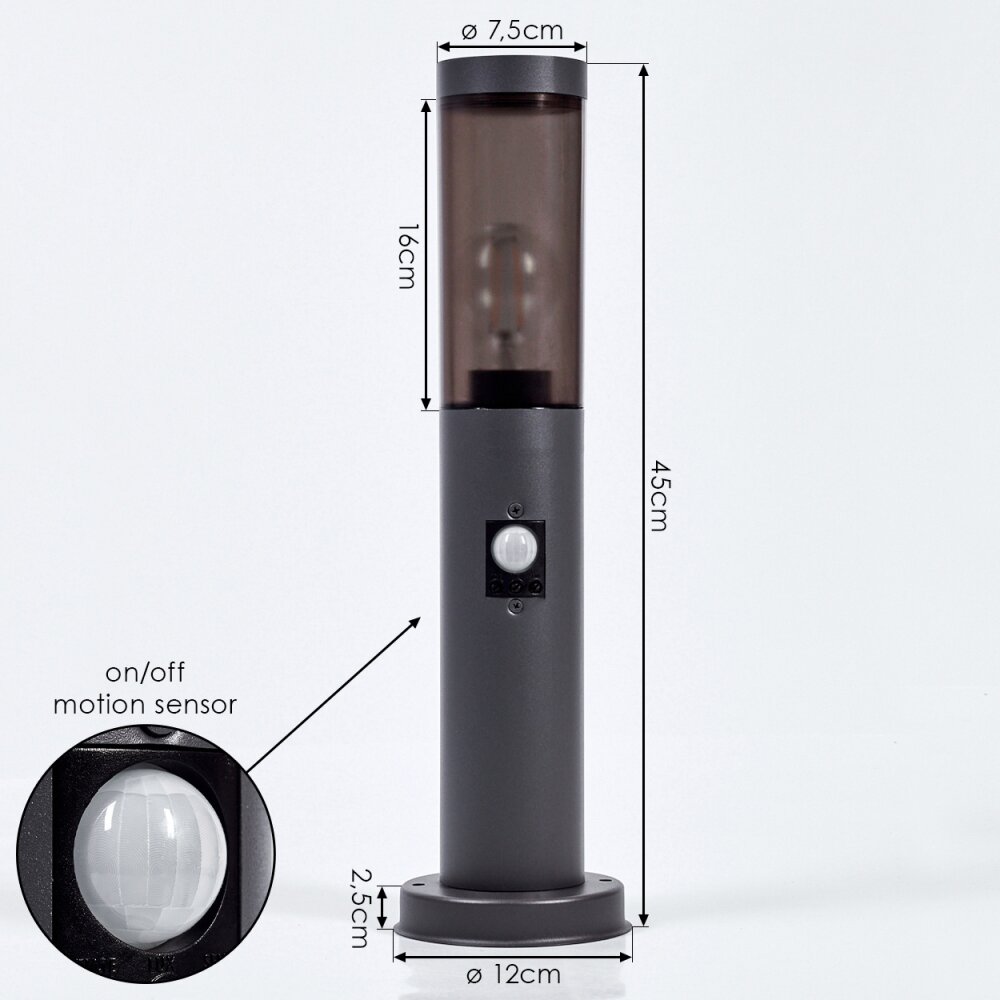 Gaborone Sokkellamp Antraciet, 1-licht, Bewegingsmelder