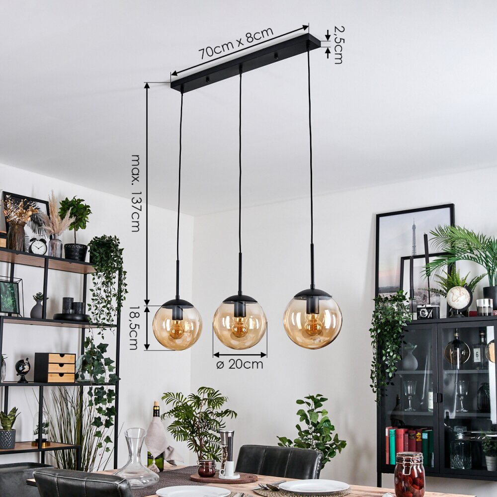Gastor Hanglamp, Kogellampje Amber, 3-lichts