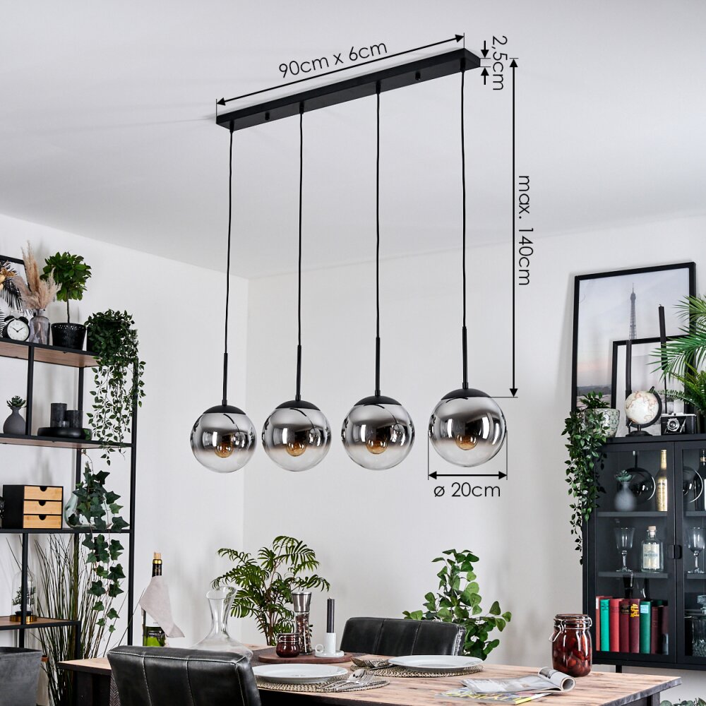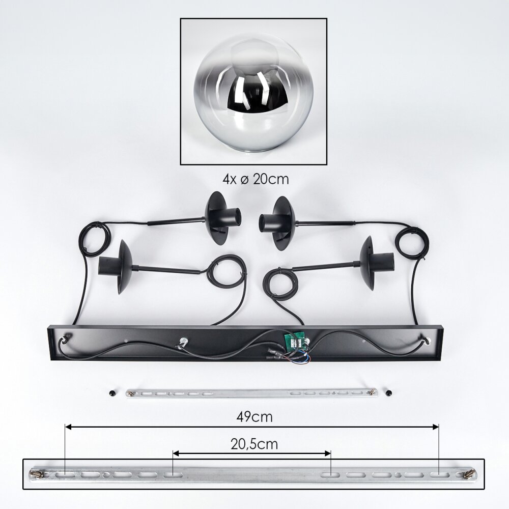 Gastor Hanglamp, Kogellampje, Hanglamp Chroom, Rookkleurig, 4-lichts