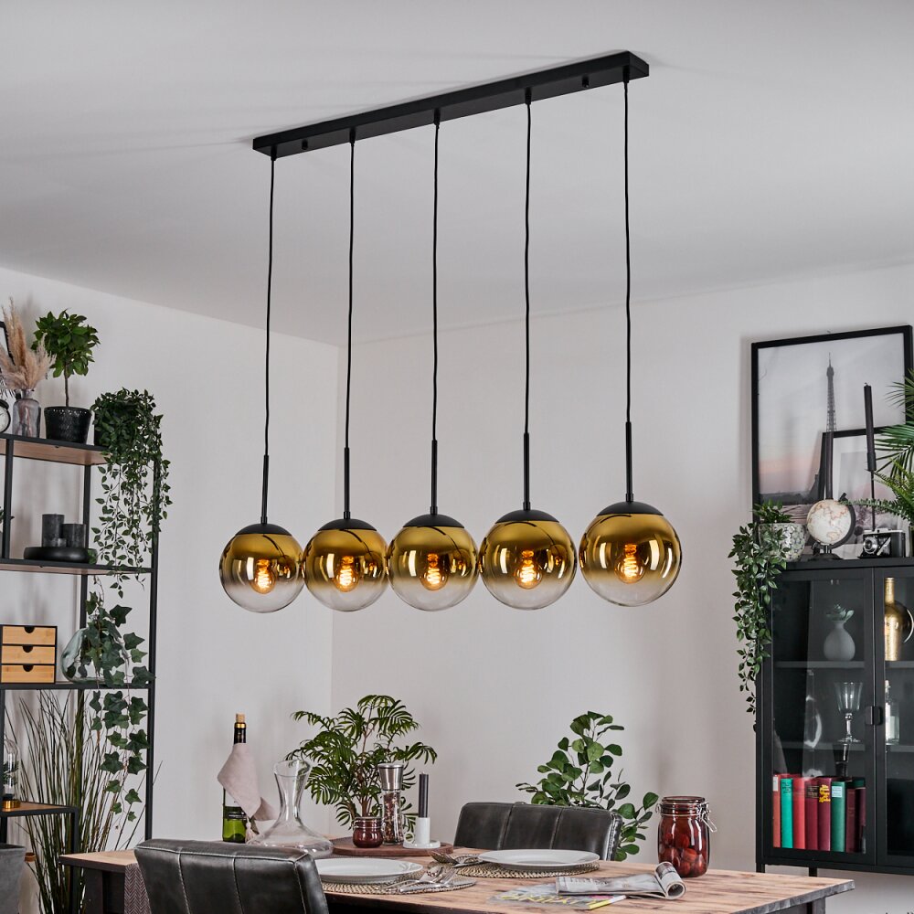 Gastor Hanglamp, Kogellampje, Hanglamp Goud, Duidelijk, 5-lichts