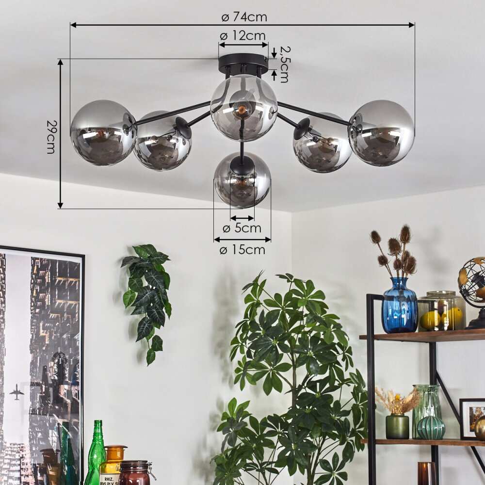 Gastor Plafondlamp 74 cm Rookkleurig, 6-lichts