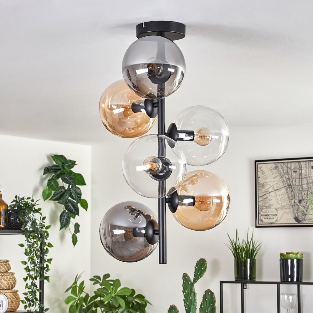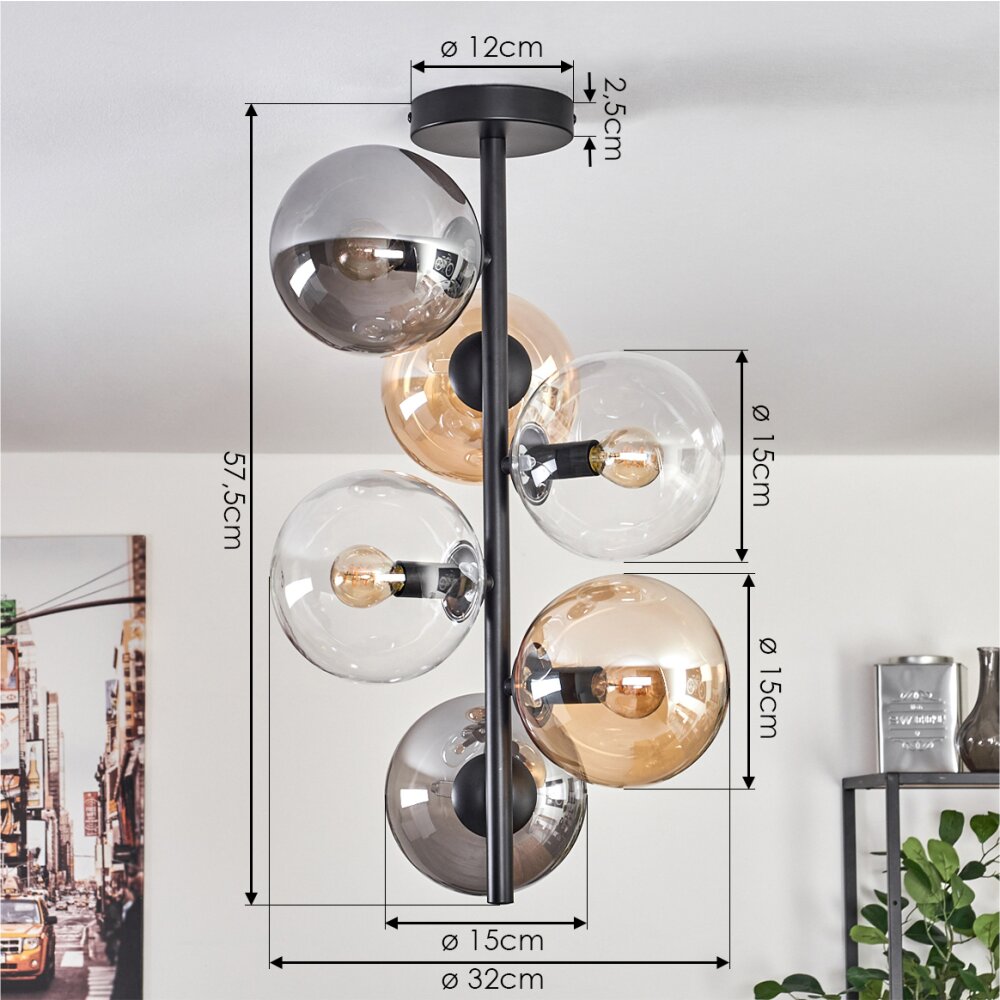 Gastor Plafondlamp - Glas 15 cm Amber, Duidelijk, Rookkleurig, 6-lichts