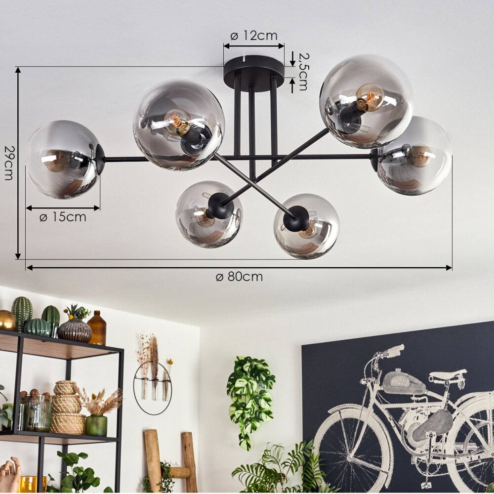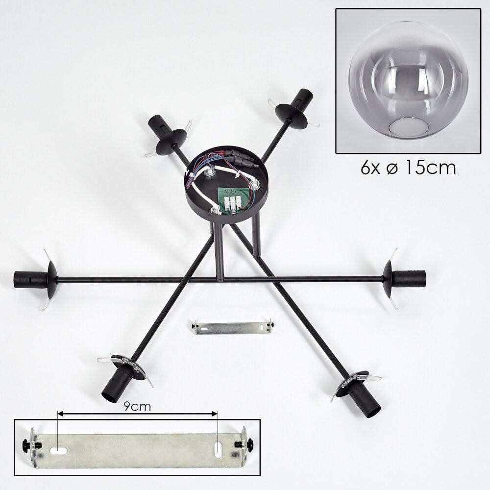 Gastor Plafondlamp - Glas 15 cm Duidelijk, Rookkleurig, 6-lichts