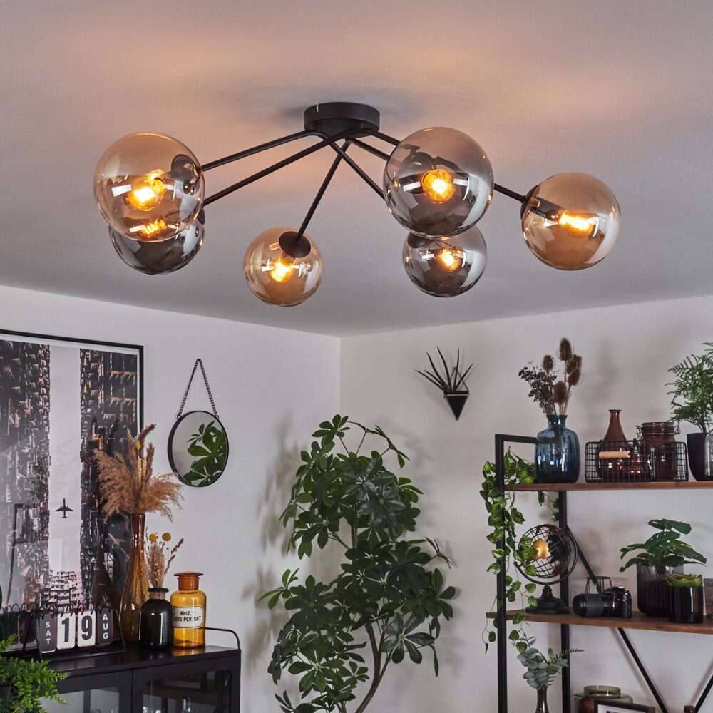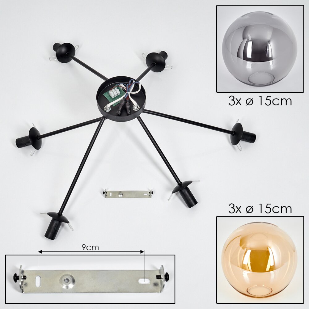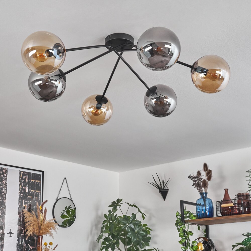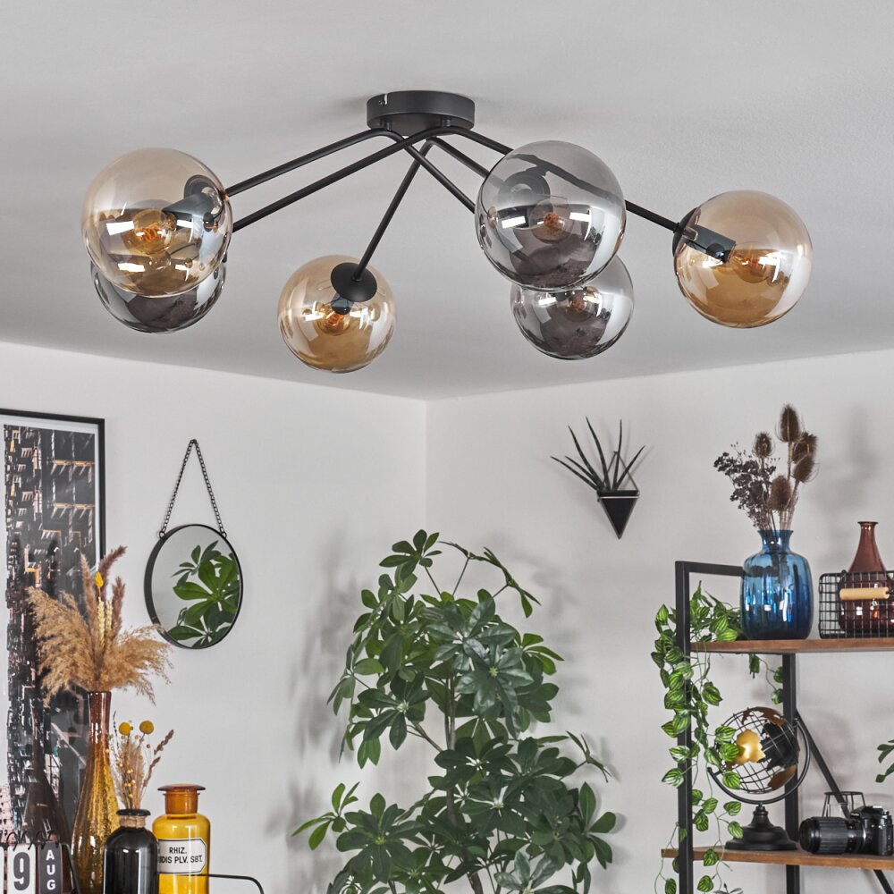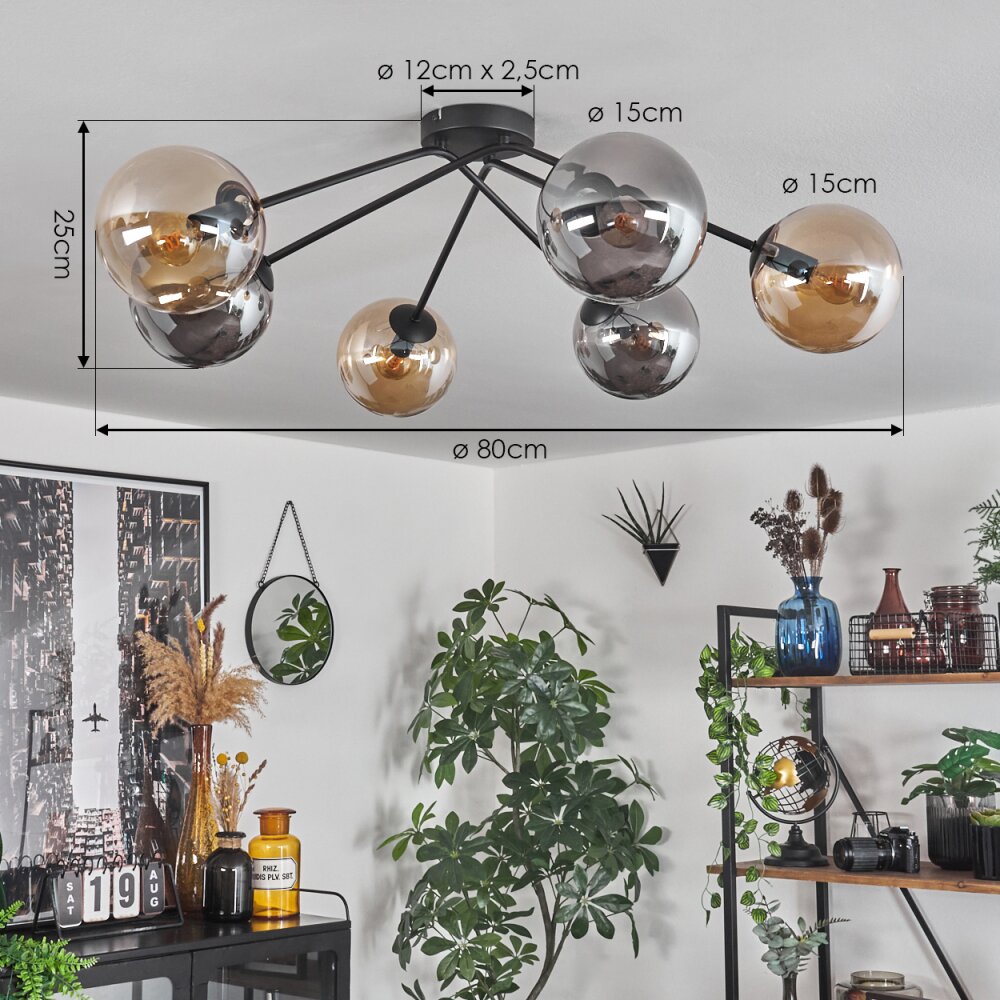 Gastor Plafondlamp - Glas 15 cm Amber, Rookkleurig, 6-lichts