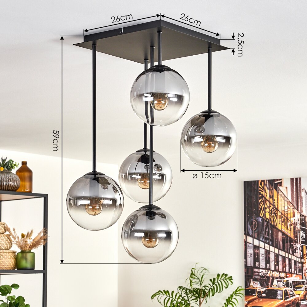 Gastor Plafondlamp - Glas 15 cm Duidelijk, Rookkleurig, 5-lichts