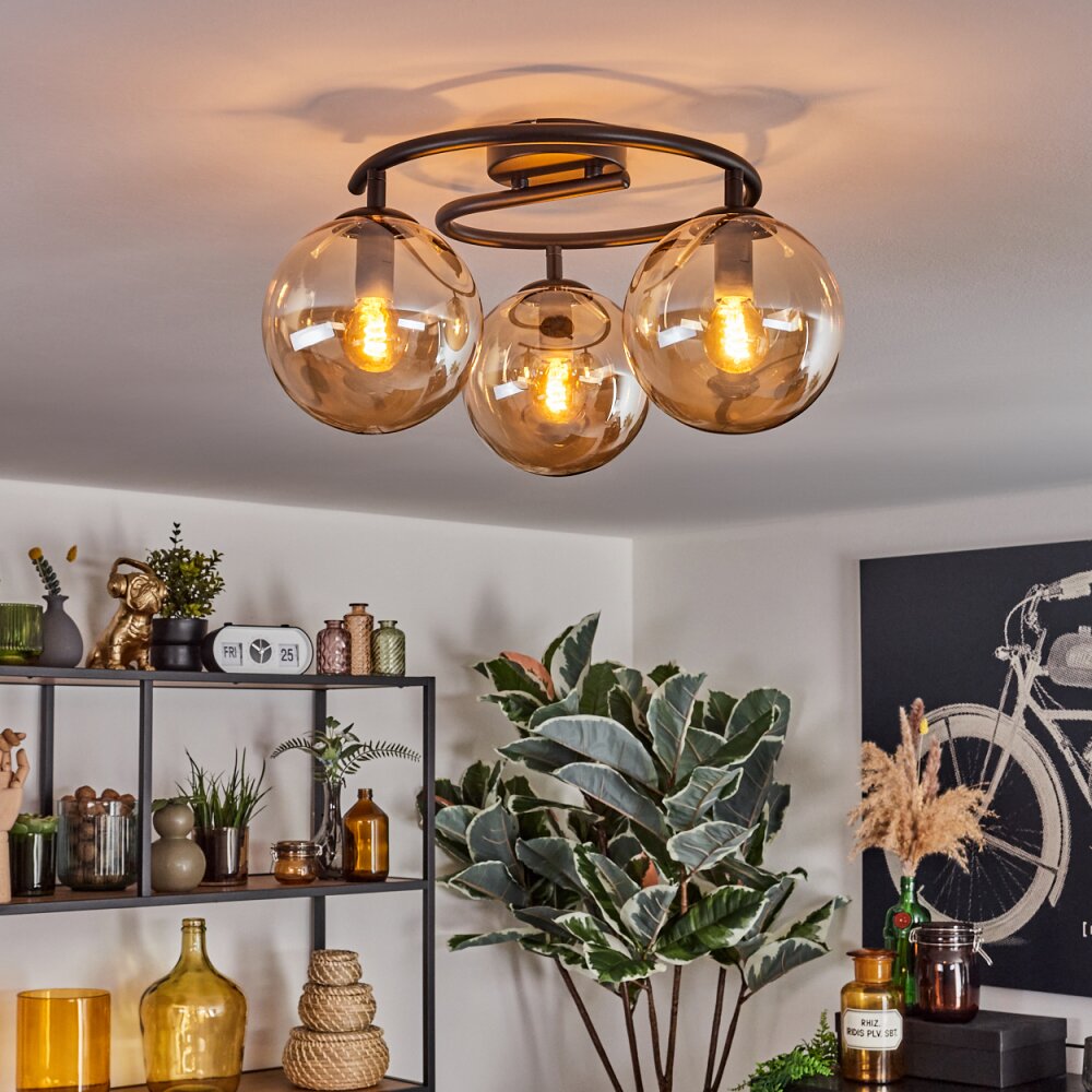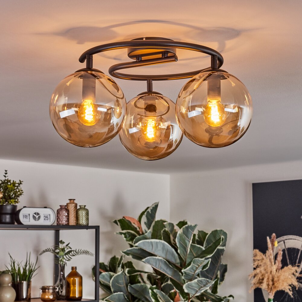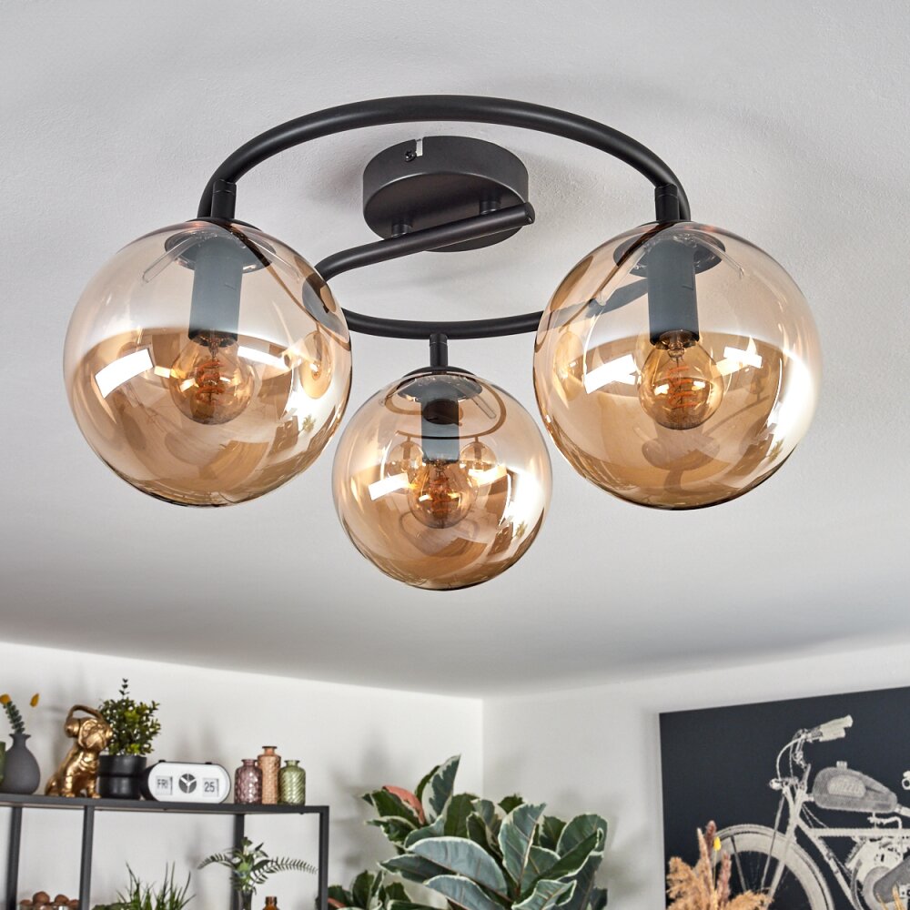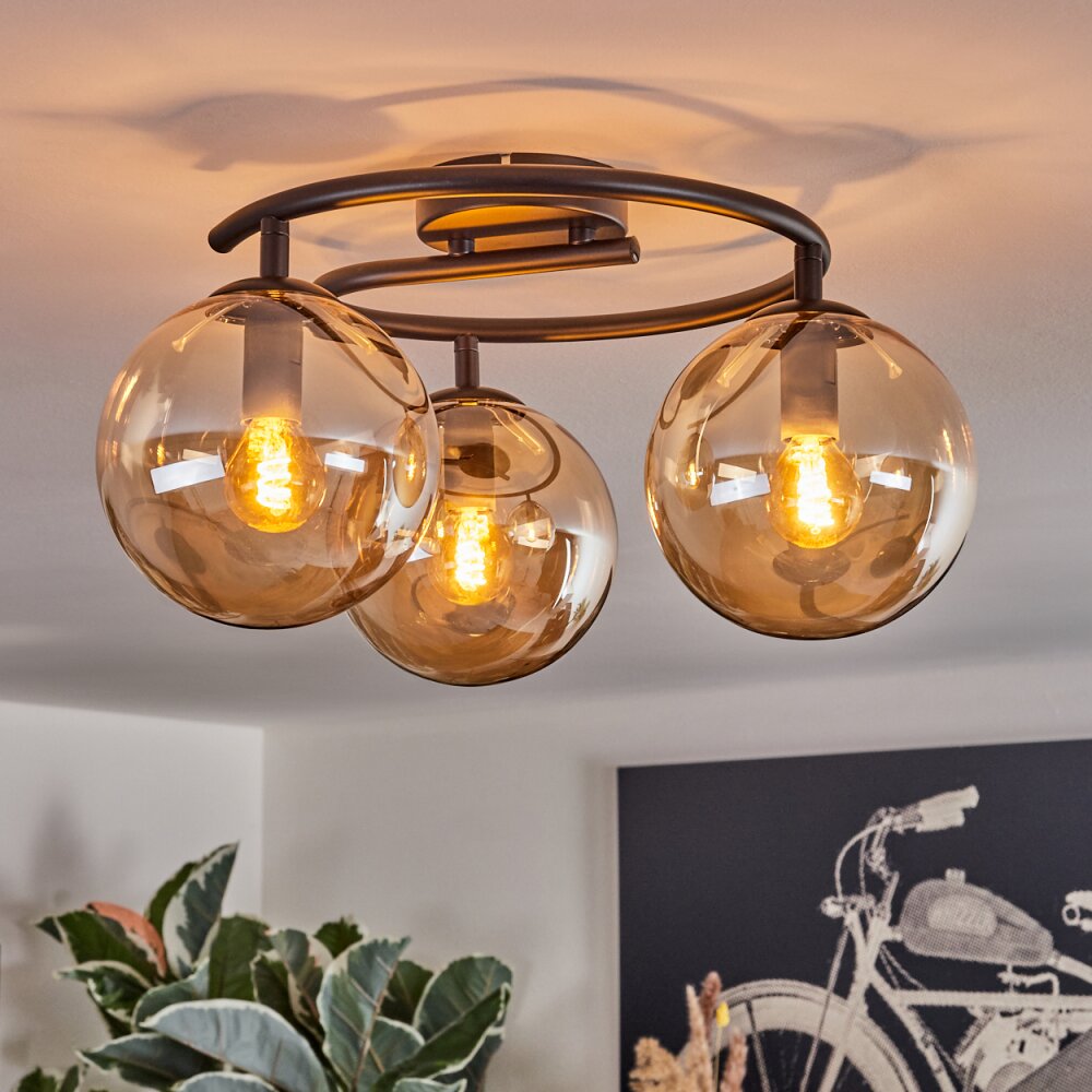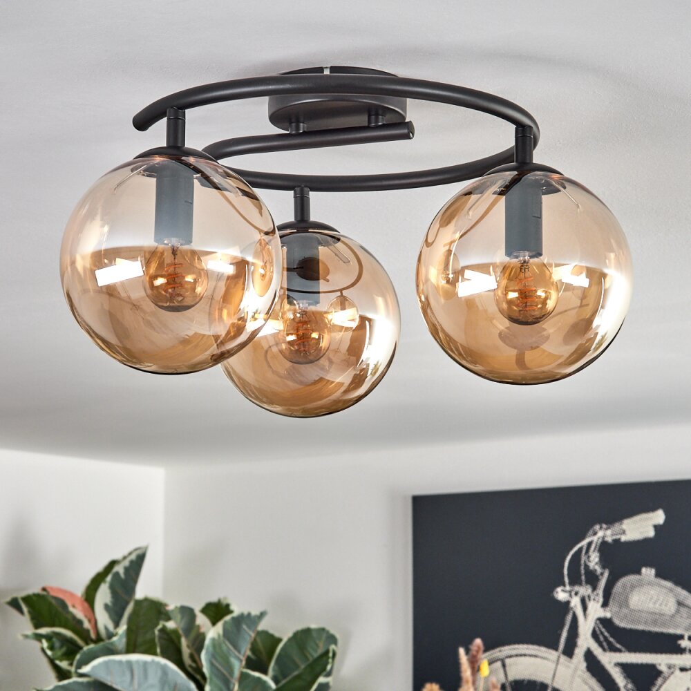 Gastor Plafondlamp, Kogellampje Amber, 3-lichts