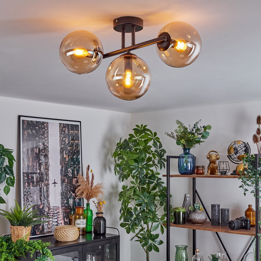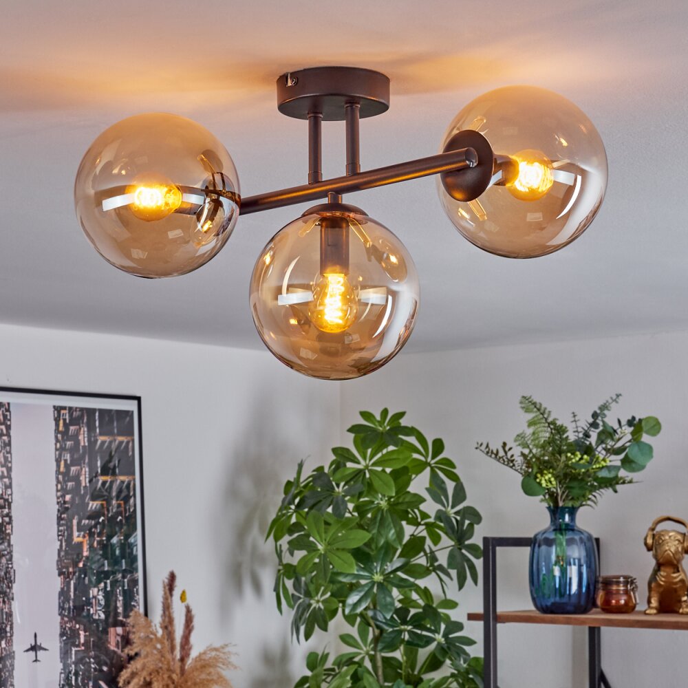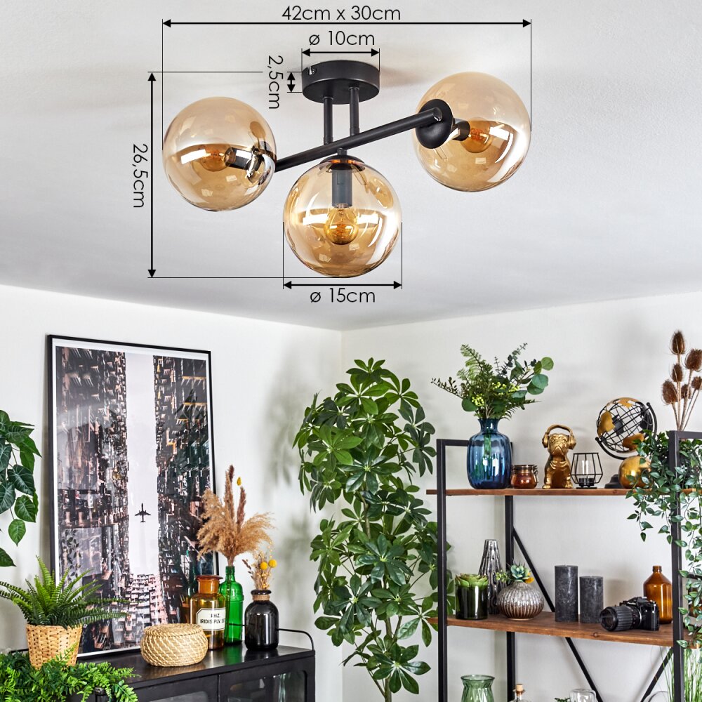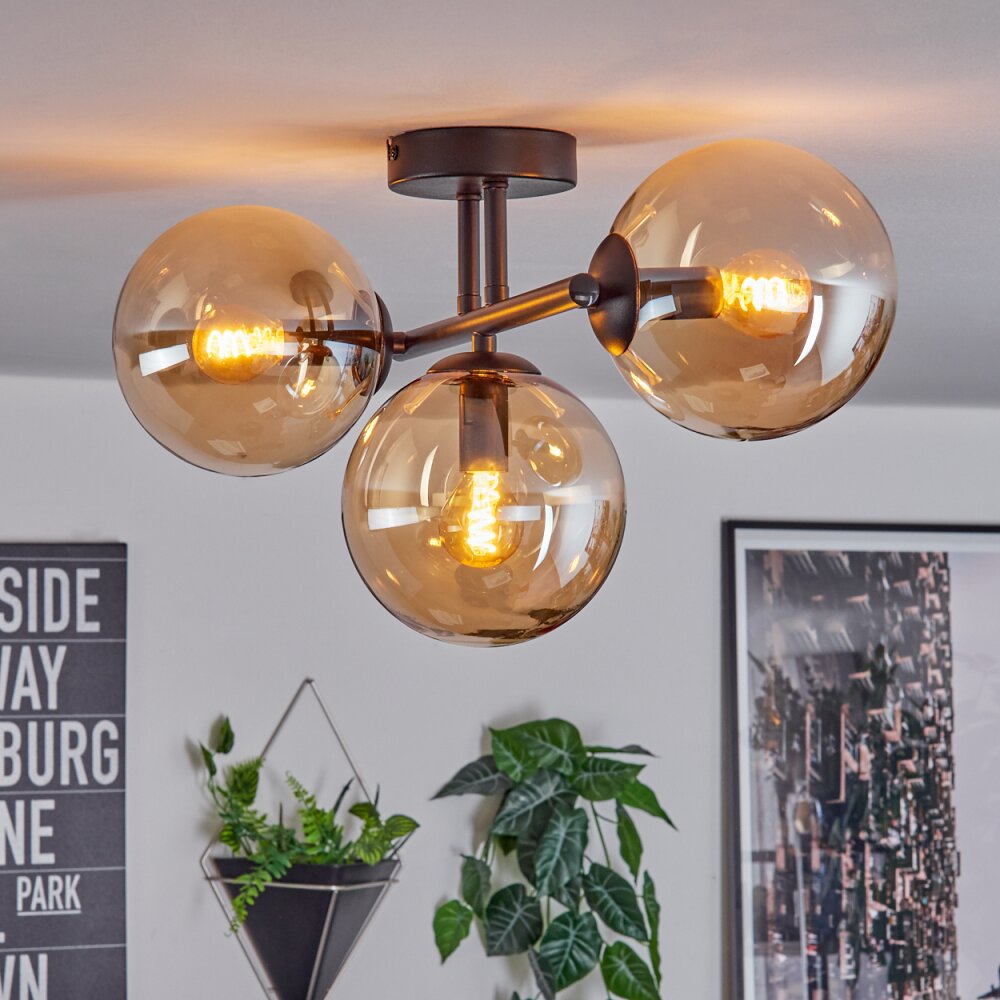 Gastor Plafondlamp, Kogellampje Amber, 3-lichts