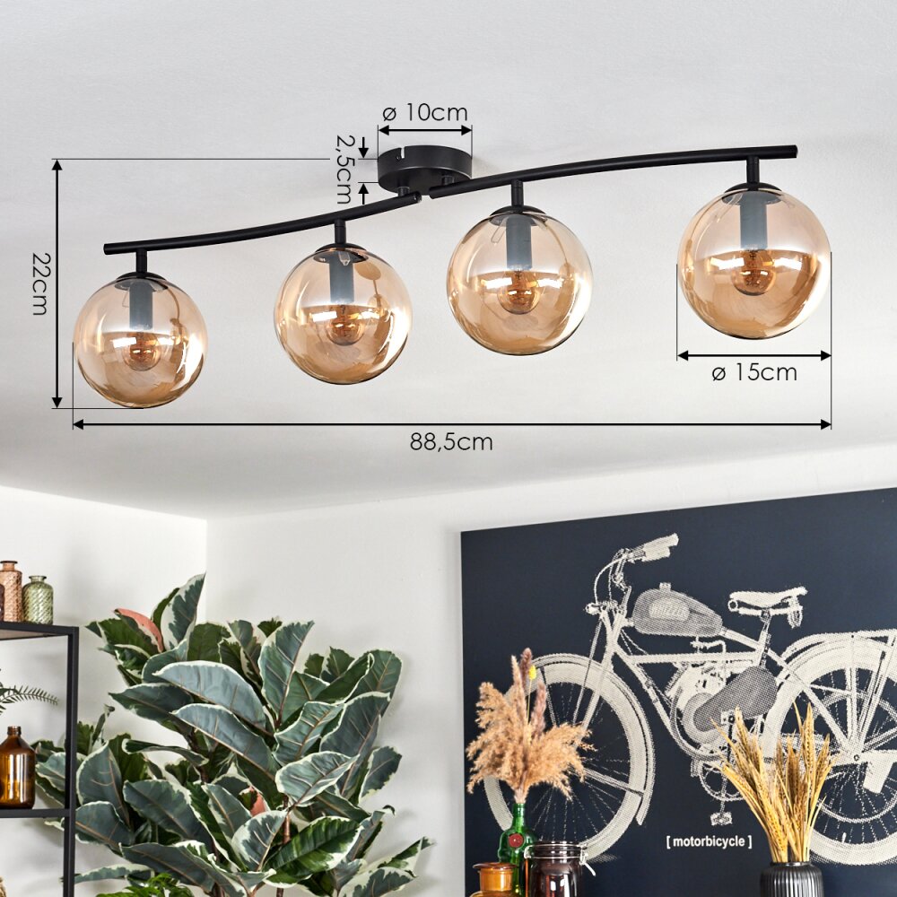 Gastor Plafondlamp, Kogellampje Amber, 4-lichts