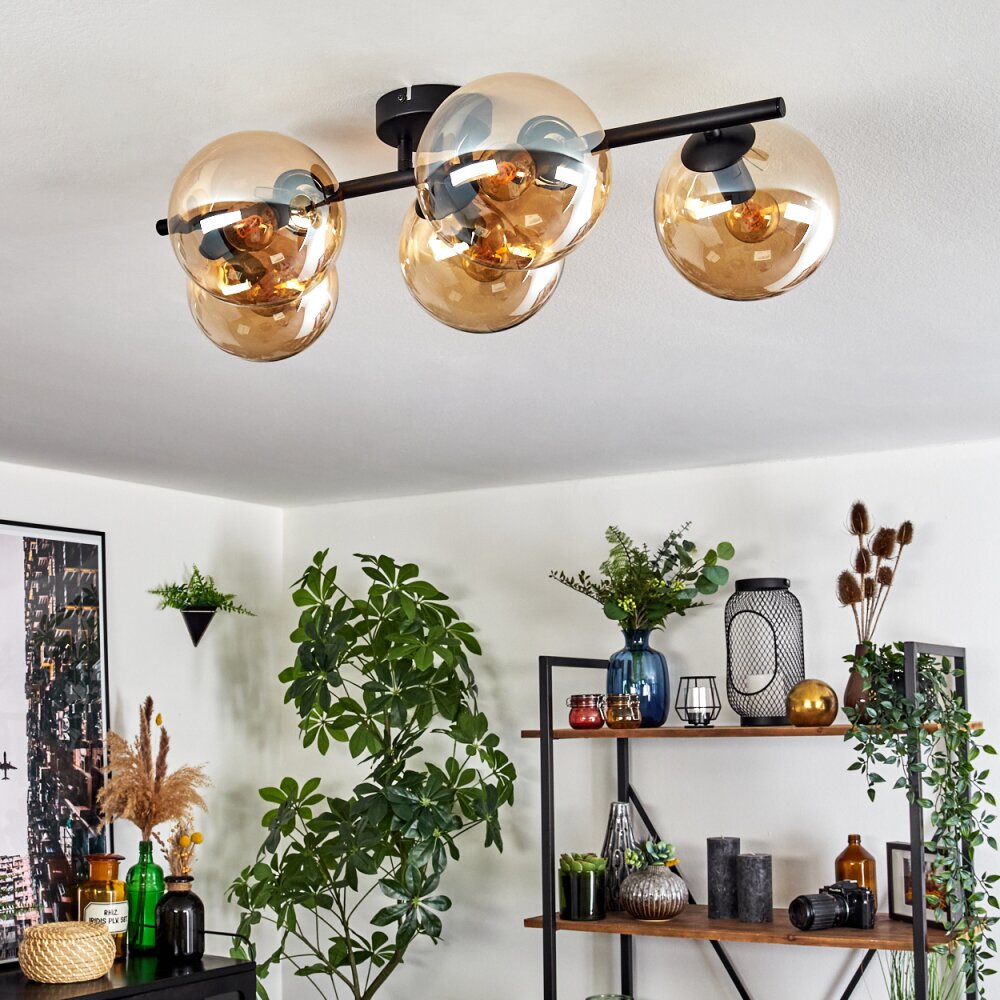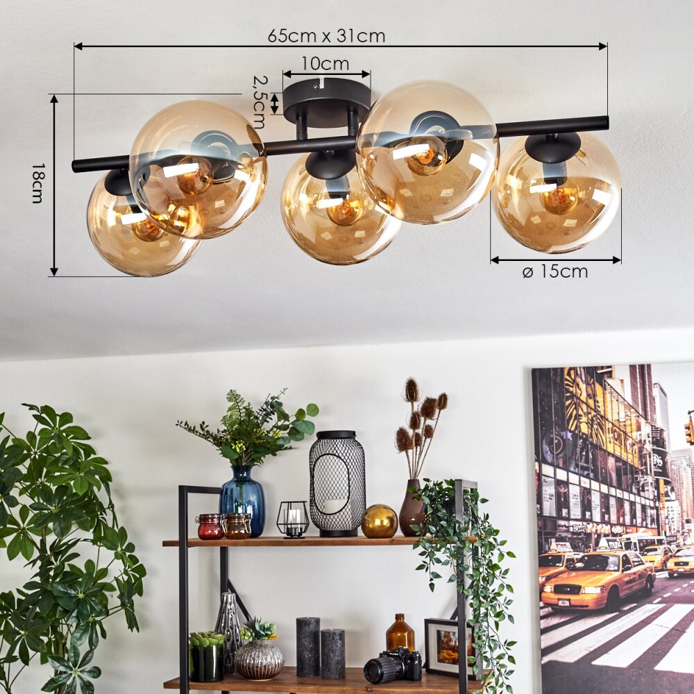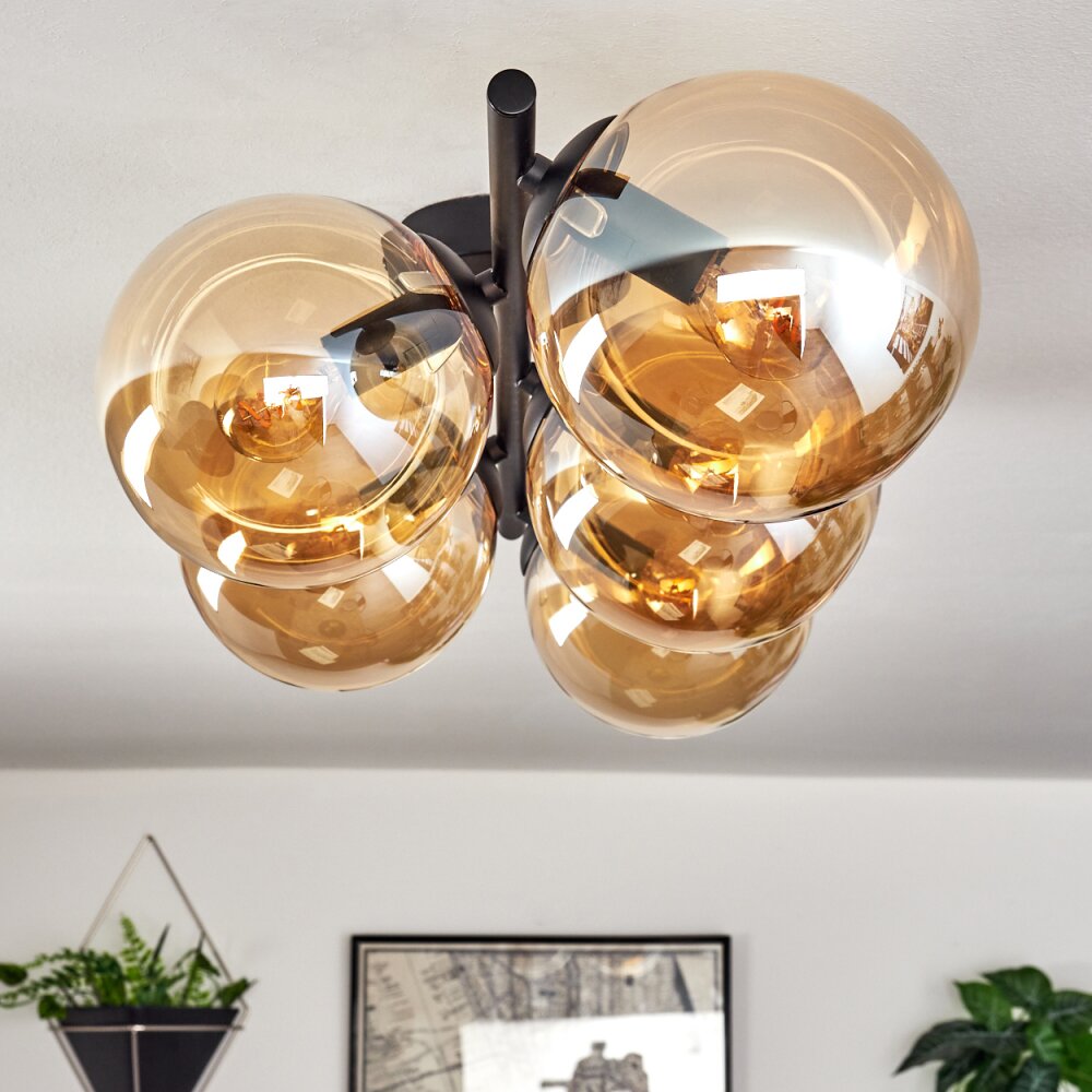 Gastor Plafondlamp, Kogellampje Amber, 5-lichts
