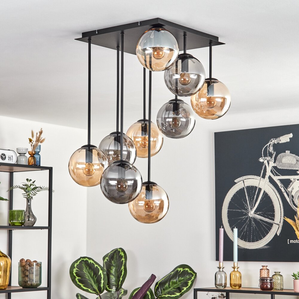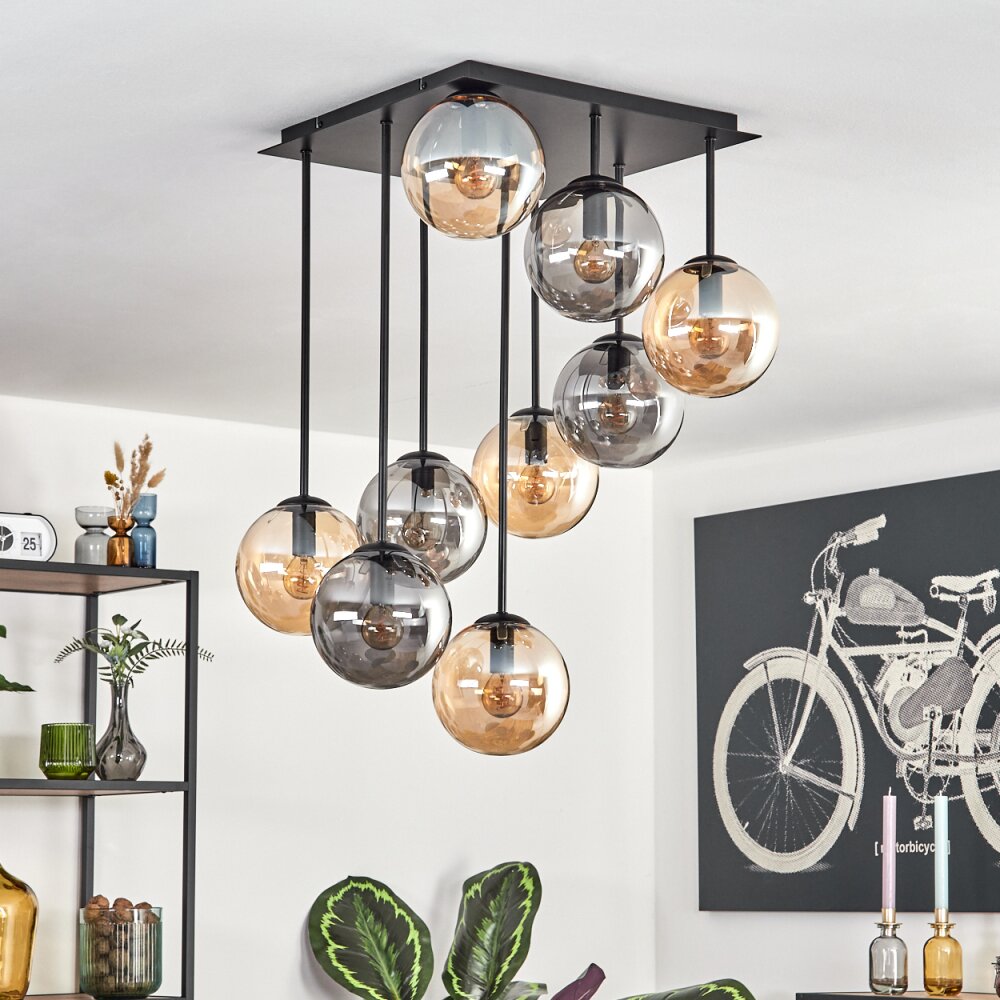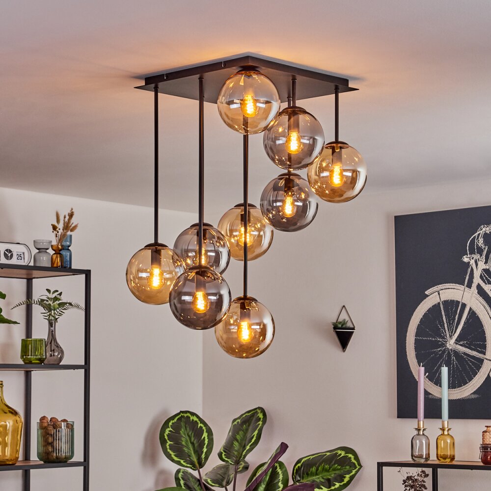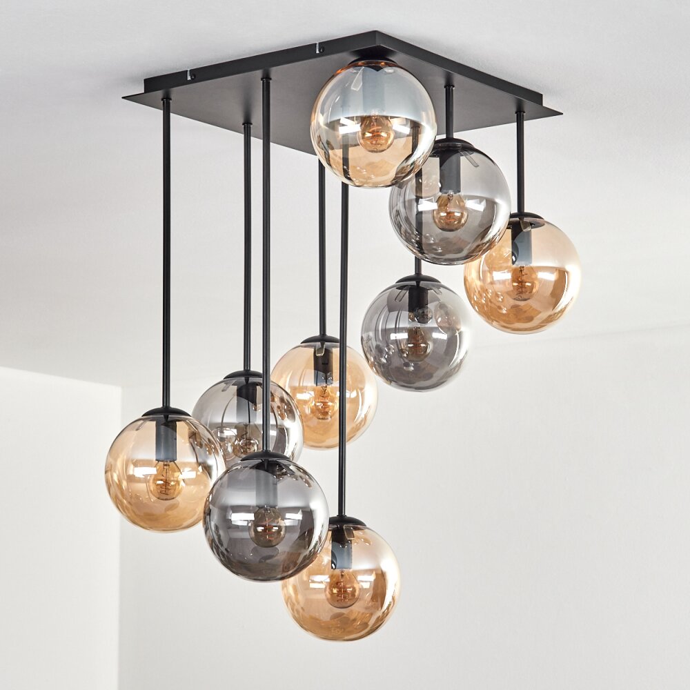 Gastor Plafondlamp, Kogellampje Amber, Rookkleurig, 9-lichts