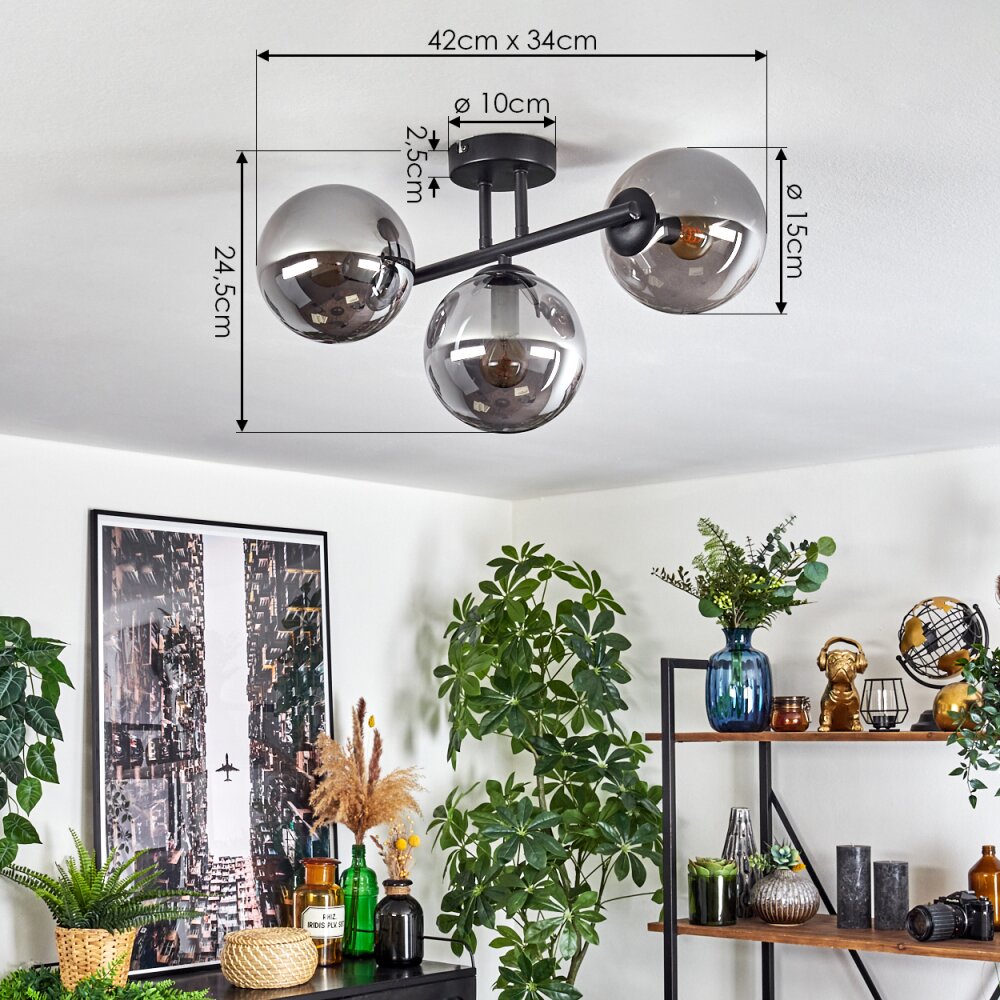 Gastor Plafondlamp, Kogellampje Rookkleurig, 3-lichts