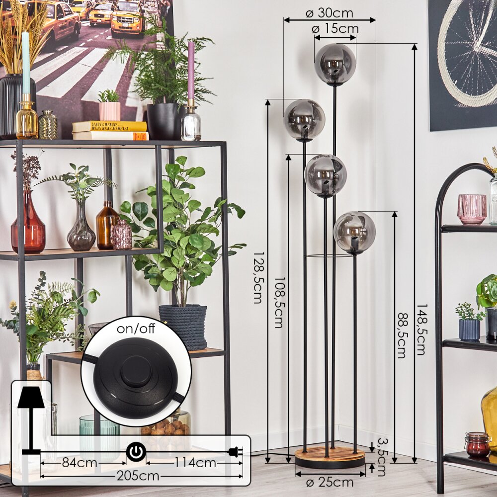 Gastor Staande lamp 30 cm Hout licht, Zwart, 4-lichts