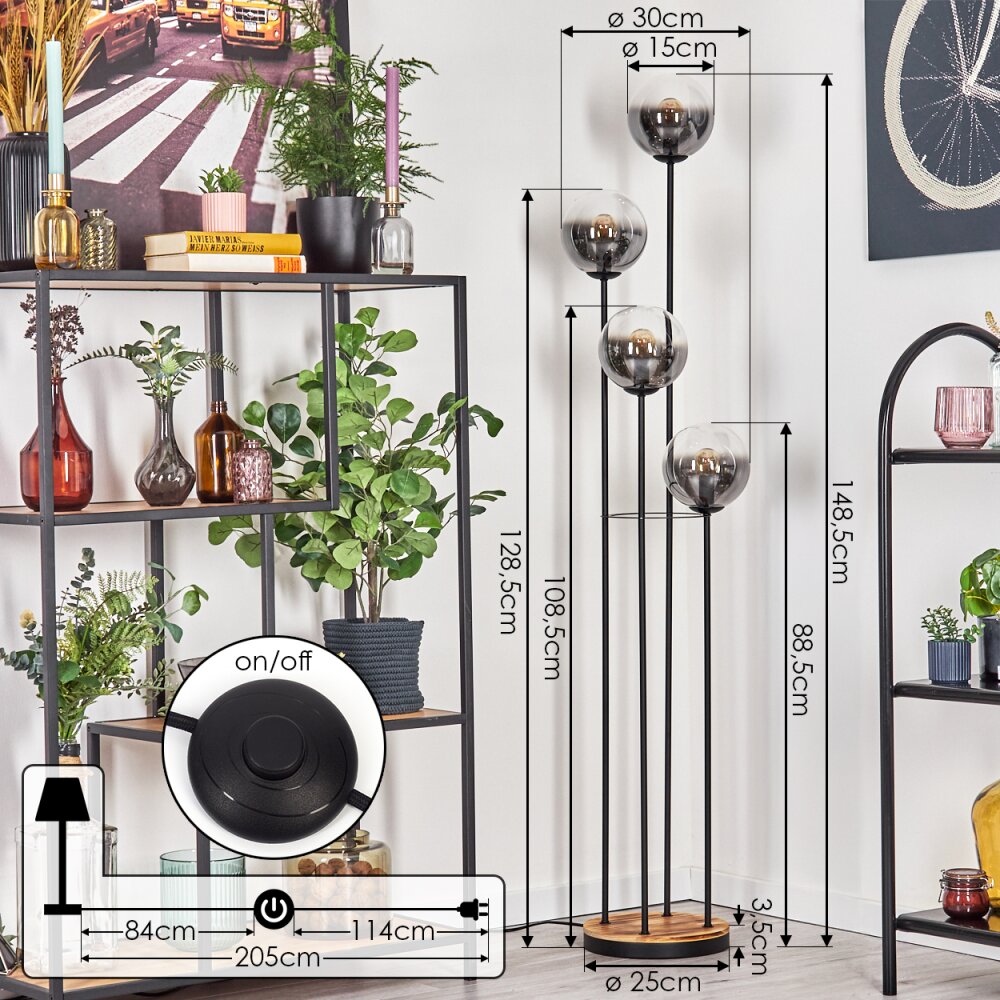 Gastor Staande lamp 30 cm Hout licht, Zwart, 4-lichts