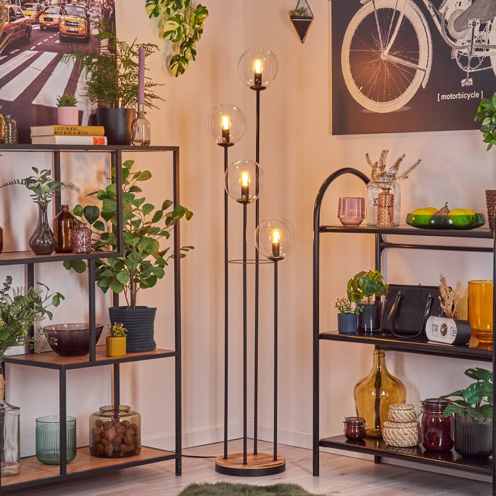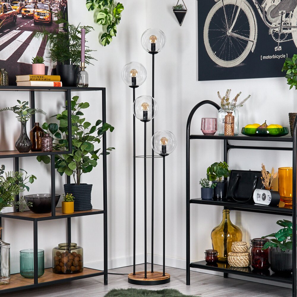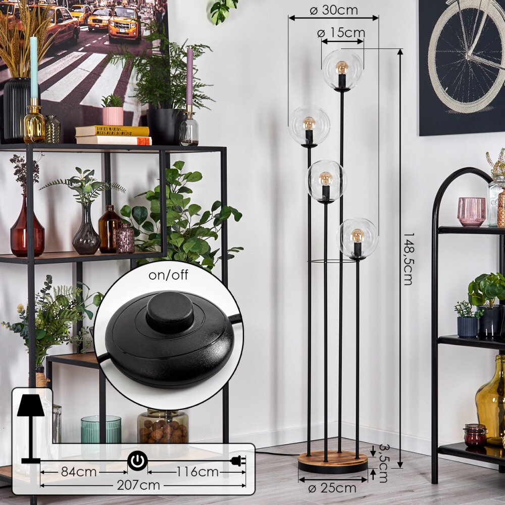 Gastor Staande lamp 30 cm Hout licht, Zwart, 4-lichts