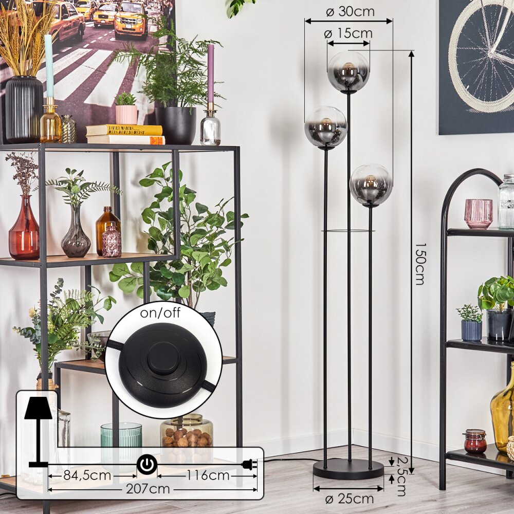 Gastor Staande lamp 30 cm Zwart, 3-lichts