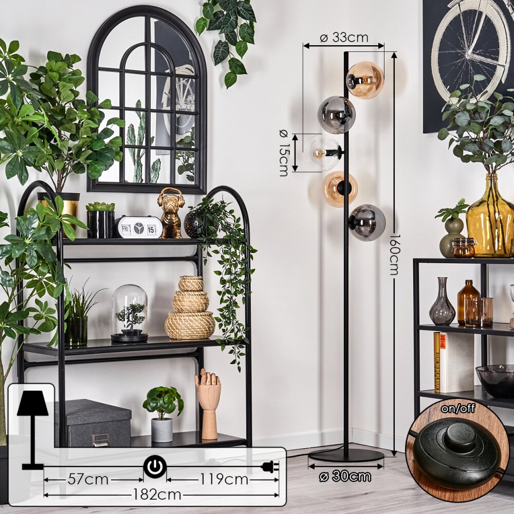 Gastor Staande lamp - Glas 15 cm Amber, Duidelijk, Rookkleurig, 5-lichts