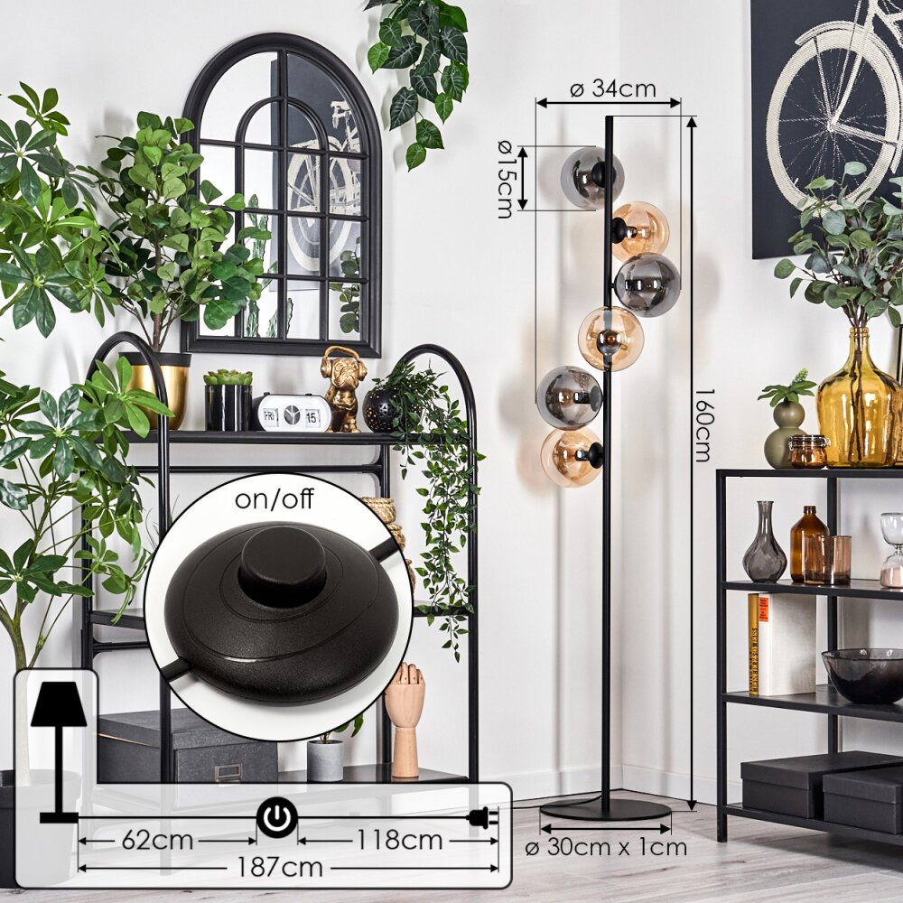 Gastor Staande lamp - Glas 15 cm Amber, Rookkleurig, 6-lichts